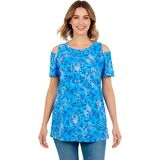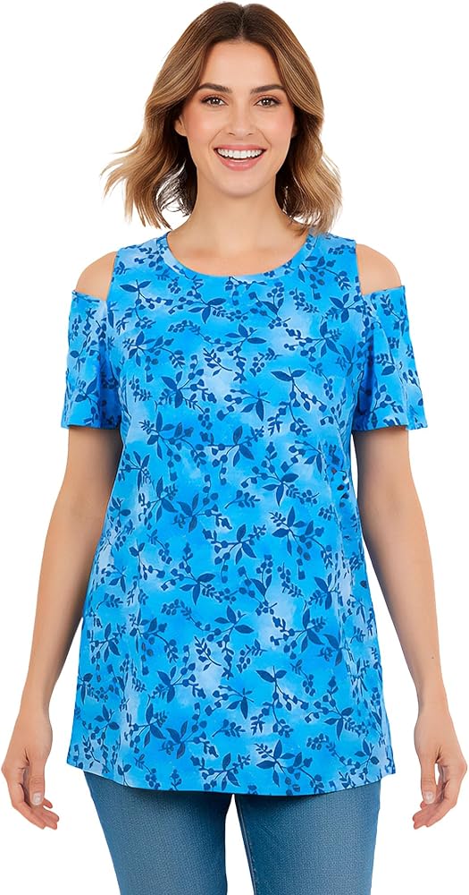 Stay effortlessly stylish with our Short-Sleeve Cold-Shoulder Tee, designed to keep you looking fabulous and feeling comfortable. Featuring chic shoulder cutouts, this top adds a trendy twist to a classic silhouette, perfect for any casual or dressy occasion. The relaxed fit and side slits offer a flattering drape that skims your curves beautifully, providing both comfort and style. Crafted from a luxurious blend of cotton and rayon, this tee has a smoother hand feel and offers a fabulous drape. With a length of 28", this tee hits right below the hips, offering the perfect coverage for any activity. Easy to care for, this tee is machine washable, ensuring it will remain a favorite in your wardrobe season after season. Join the body-positive movement with this essential piece from Woman Within, celebrating style and confidence for every woman. Imported