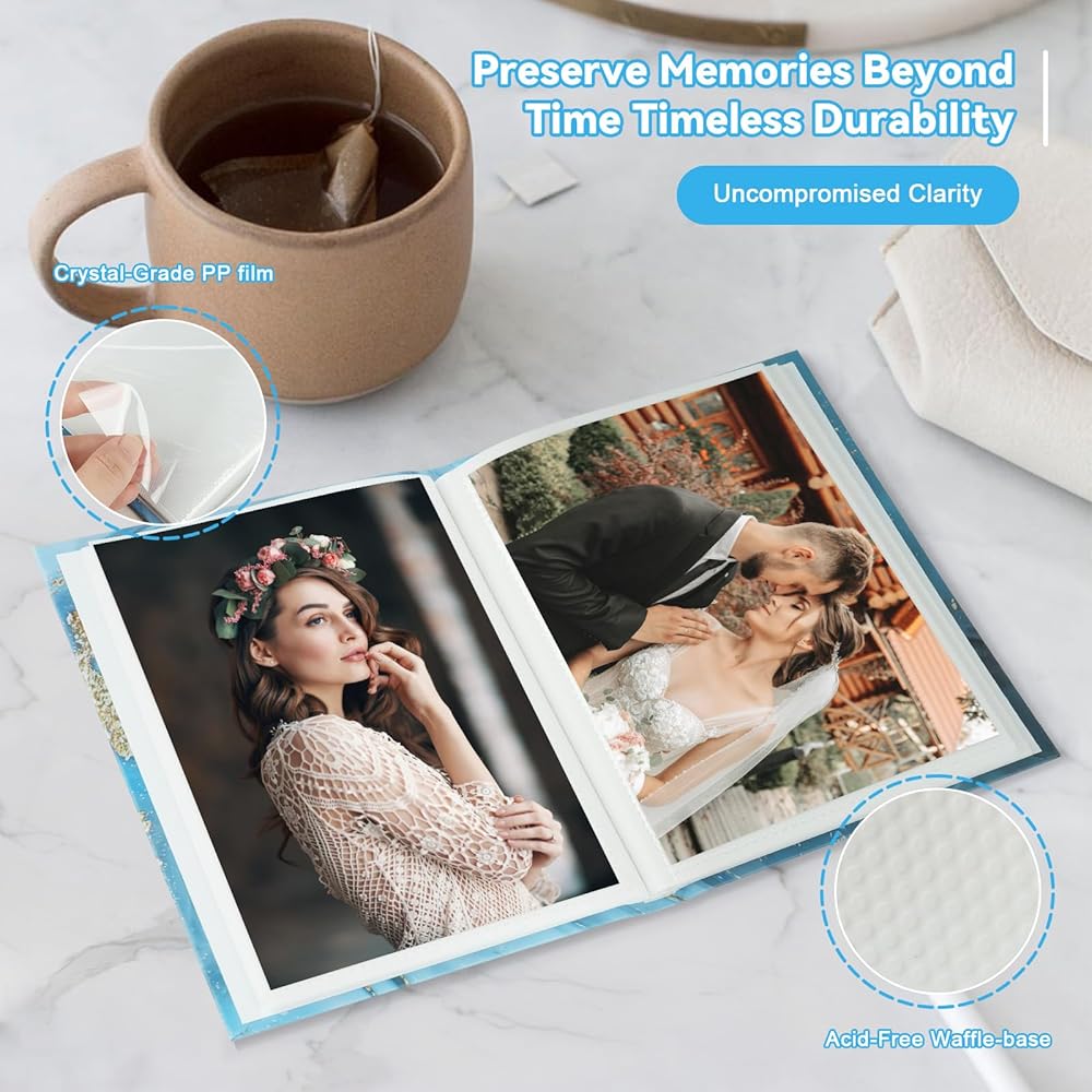 Preserve Memories Beyond Time(Timeless Durability, Uncompromised Clarity):We understand that albums carry the weight of irreplaceable moments. That's why our Triple-Layer Preservation Architecture redefines photo protection:1) Acid-Free Waffle-base – Neutralize oxidation to prevent yellowing. 2)Crystal-Grade PP film – Combines scratch resistance with 99.8% UV filtration to block fading.3) Precision-Engineered Molecular Structure – Eliminates ink diffusion and environmental degradation. Through science-driven innovation, every page becomes a fortress of preservation. Your photos will defy the passage of time, retaining their original clarity and vibrance for generations to come.
