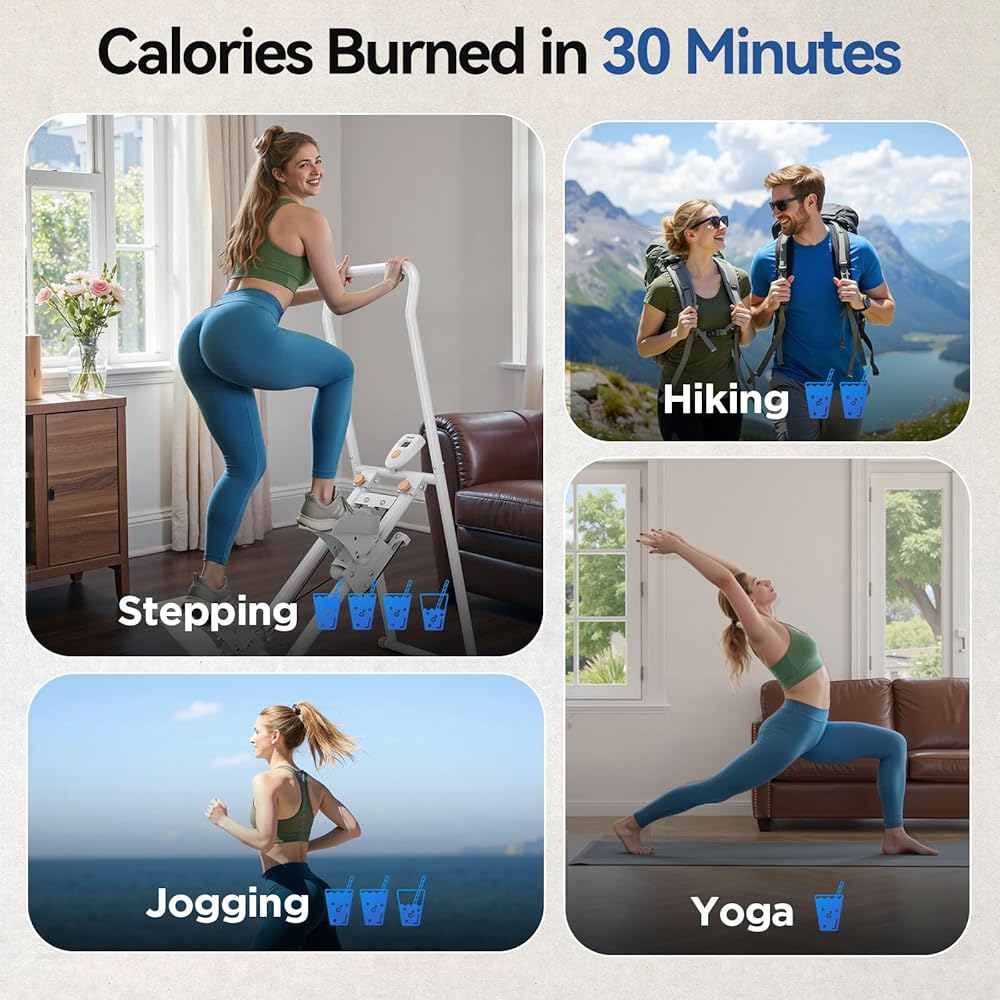 【Reliable Stability with 300 LBS Capacity】With 5CM commercial-grade steel frame, Niceday stepper for eaercise at home can support 300 pounds of load, the stable double-triangle structure ensures stability during high-intensity workouts and reduces your concerns about rocking. Product size 33.9*22.1*35.5 inches, 18 inches maximum stride length, suitable for most people.