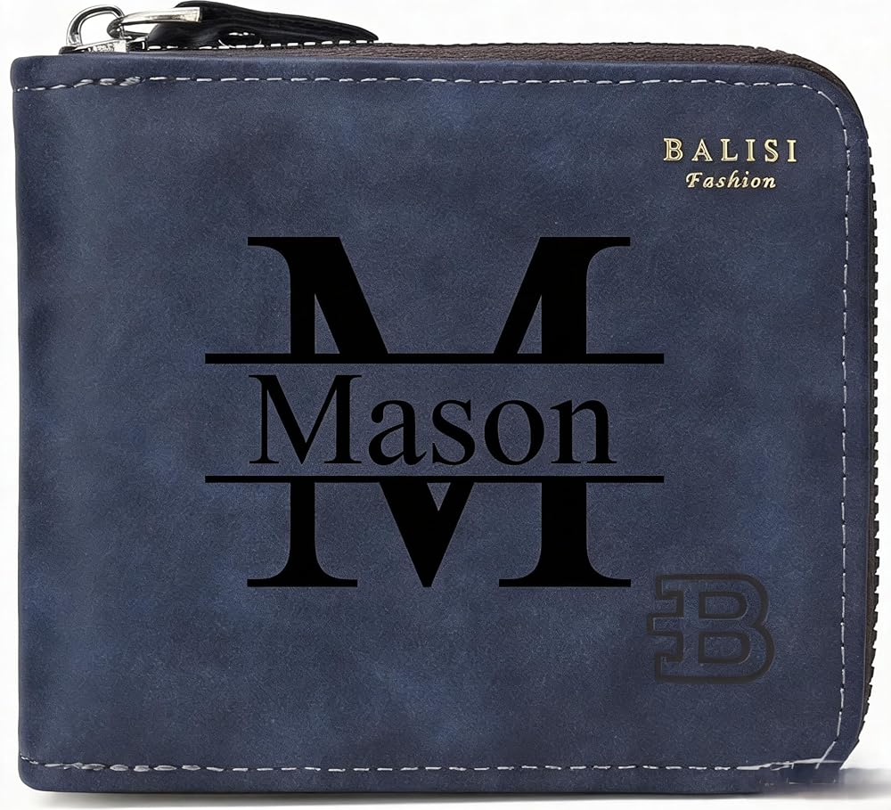Personalized Leather Wallet for Men,Custom Engraved Name and Initial, Durable Zipper, Large Capacity, RFID Blocking Boys Wallet Personalized Gifts For Son, Boyfriend (blue)