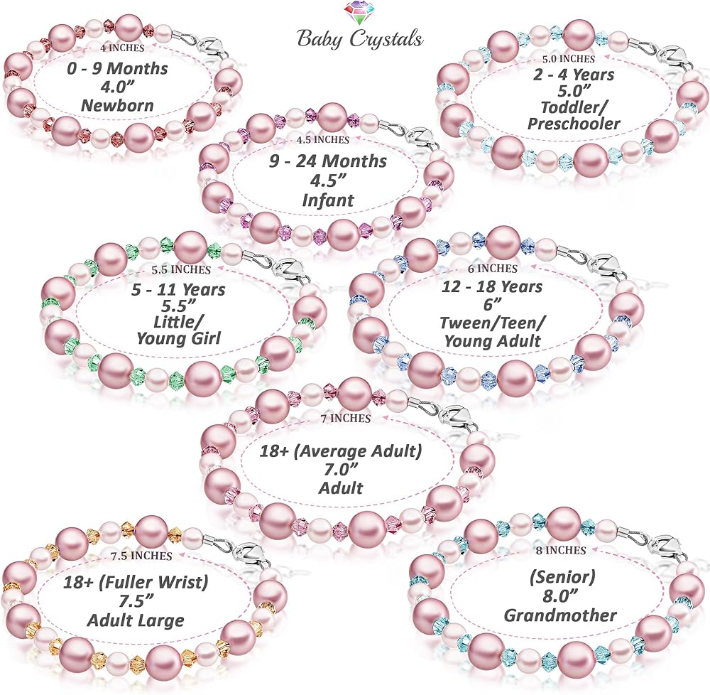 Exceptional quality. handmade personalized baby gifts, custom jewelry, Sterling Silver bracelet Charms for Girls Jewelry, are made to order with high end white simulated Austrian pearls and European crystals hand crafted by artisan jewelers in the USA