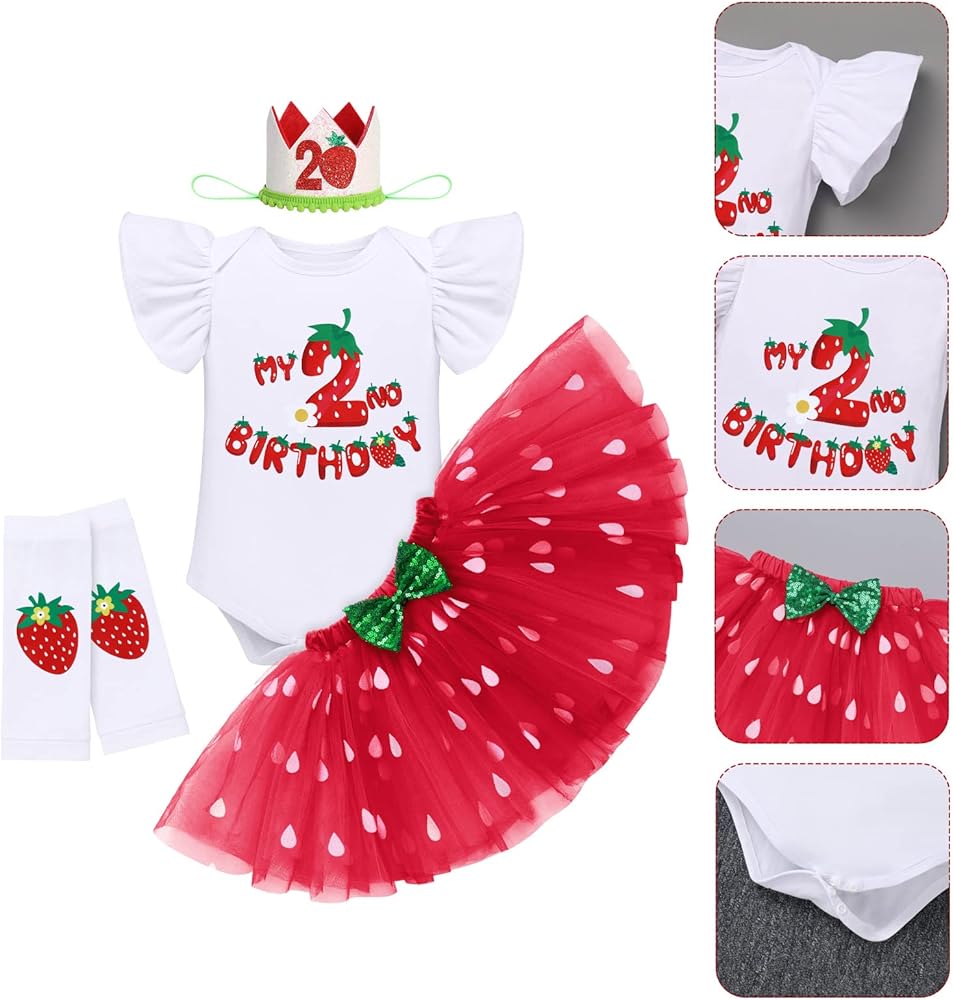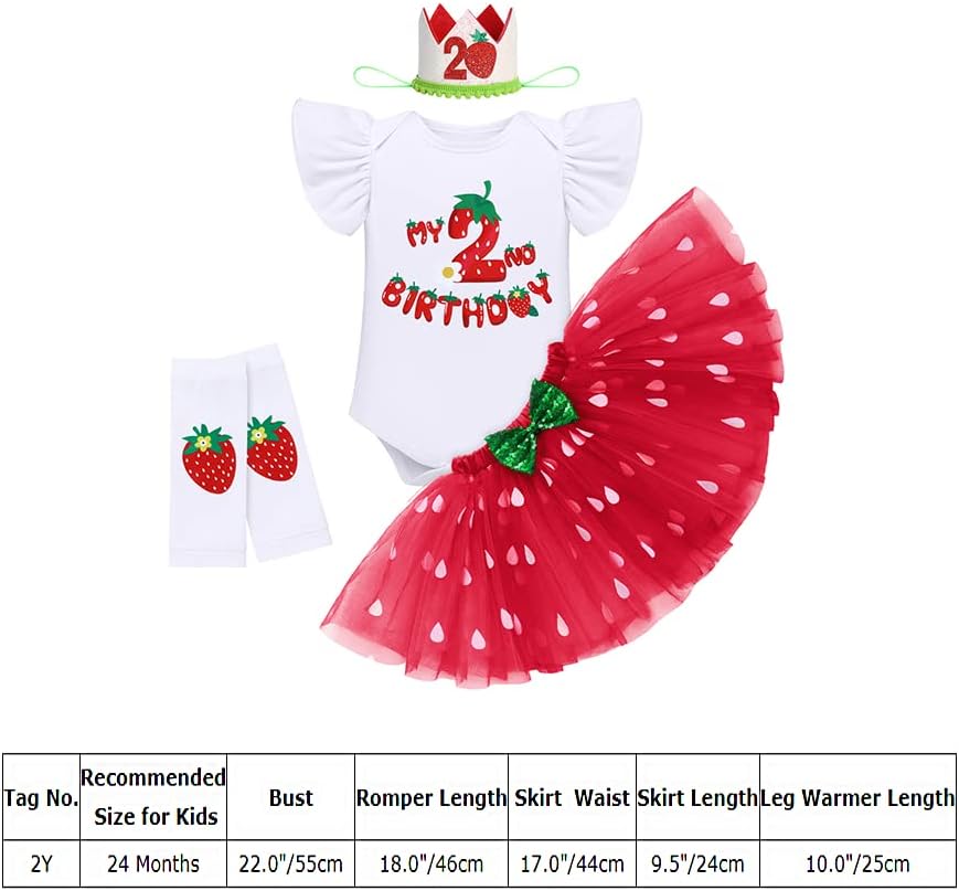 🍓🍓【4PCS Strawberry Birthday Outfit Baby Girl Tutu Skirt Set】Adorable red strawberry theme birthday costume, strawberry 1st birthday outfit, strawberry 2nd 3rd birthday outfit, strawberry 1/2 birthday outfit. Infant baby girls berry first birthday outfit, 4PCS in one set, Strawberry Romper / Shirt + Berry Tutu Skirt + Headband + Leg Warmers. Cutest toddler little girls cake smash coming home outfit, Halloween dress up costume photo props, best as princess birthday gift for 6M-3T baby girls.