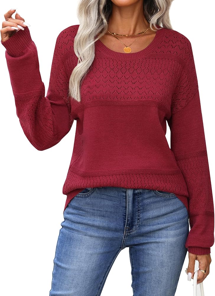 Unique Style: This fall sweaters for women 2025 features a trendy hollow knit, classic round neck, and casual loose fit. The crochet tops for women showcase a unique lantern sleeves design that adds retro charm and slims the arms—effortlessly chic and comfy.