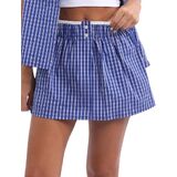 UAURORAO Women Gingham Boxer Skirt Y2k Plaid Checkered Mini Short Skirt E Girls Elastic Waistband Preppy Pencil Skirt