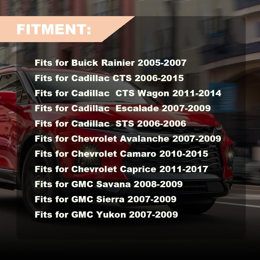 Fitment2:For C.hevrolet: for SS Sedan 2015-2017, for SSR 2005-2009, for Suburban 2007-2009, for Tahoe 2007-2009, for Trailblazer 2005-2009.