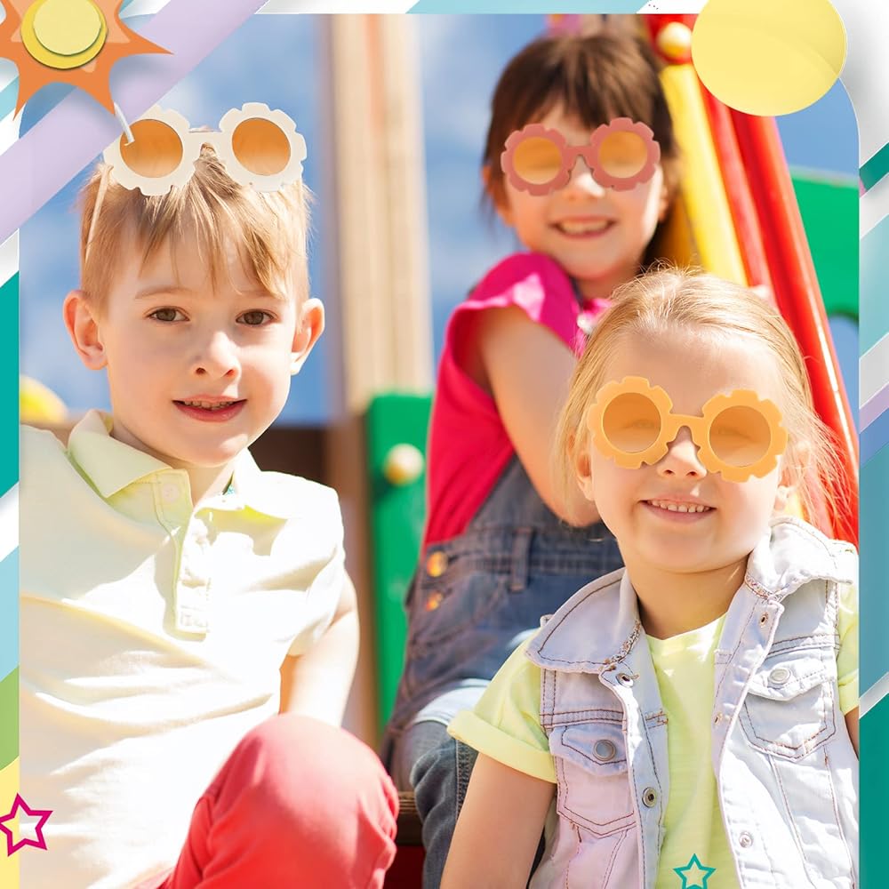 Reliable material: these kids flower sunglasses are flat and lasting, made of quality acrylic and PC material which is skin-friendly and not easy to break, allowing your kids to wear for a long time