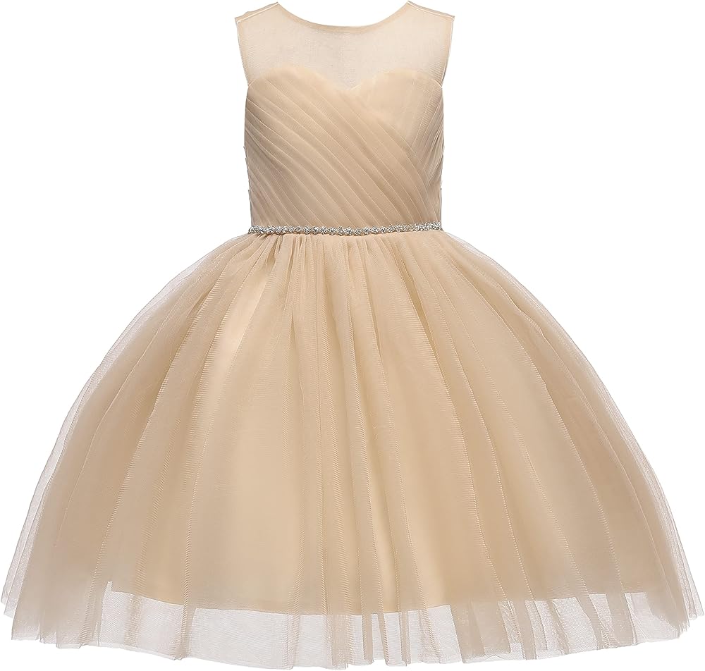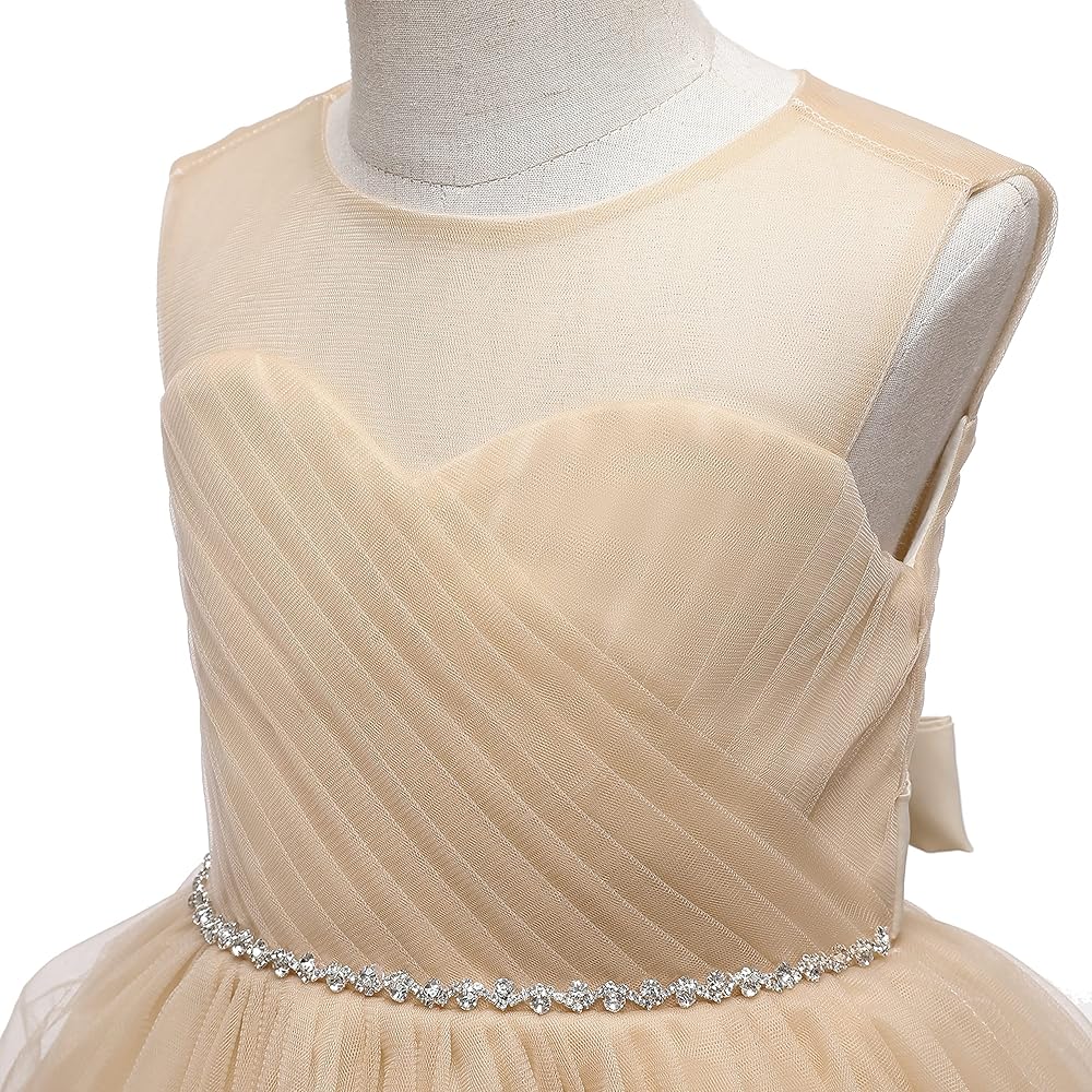 Design: Girl daddy daughter dance dress. This beautiful inspired dress is made of charming haze blue tulle to make a dress fit for a princess. The bodice features with light tulle and neat folded tulle stitching design. Featuring shimmery high quality glass crystal rhinestones in silver settings in the front of waist. Hidden back zipper closure, satin fabric ties in a bow on the back. Our blue tulle dress will have your flower girls feeling like they are in a real fairy tale. Perfect year round.