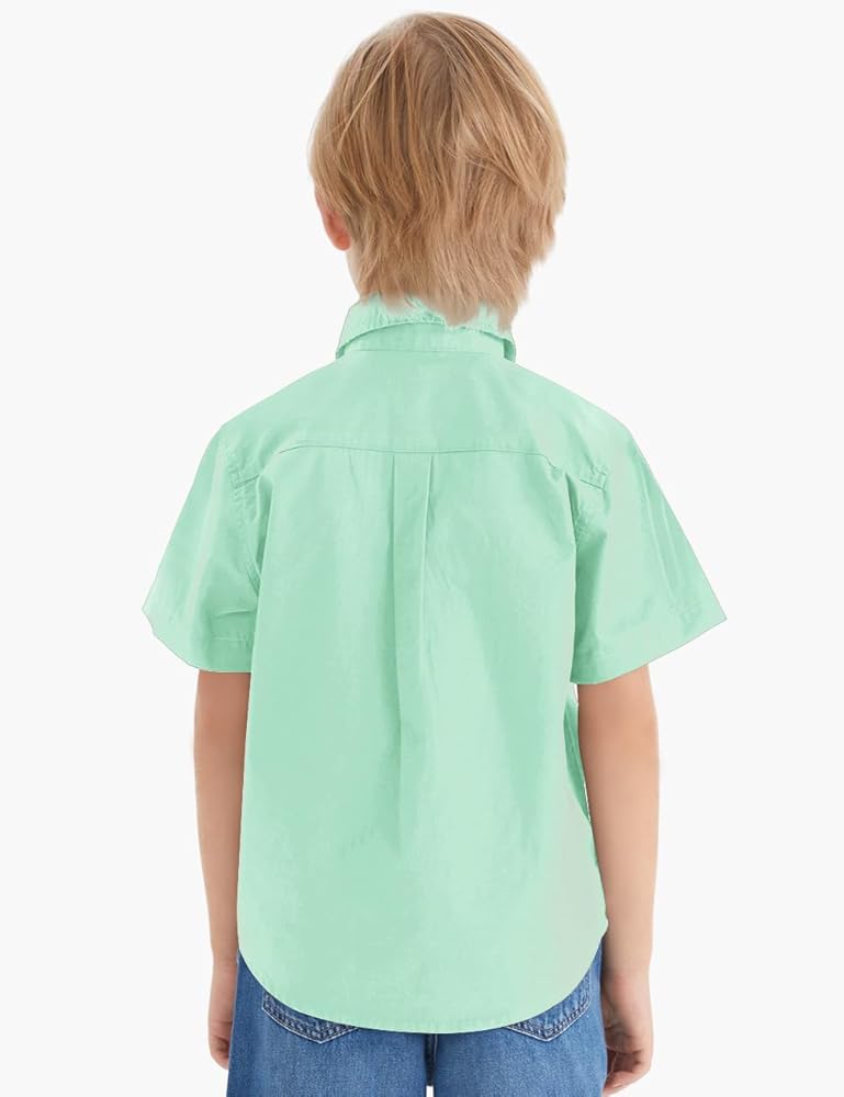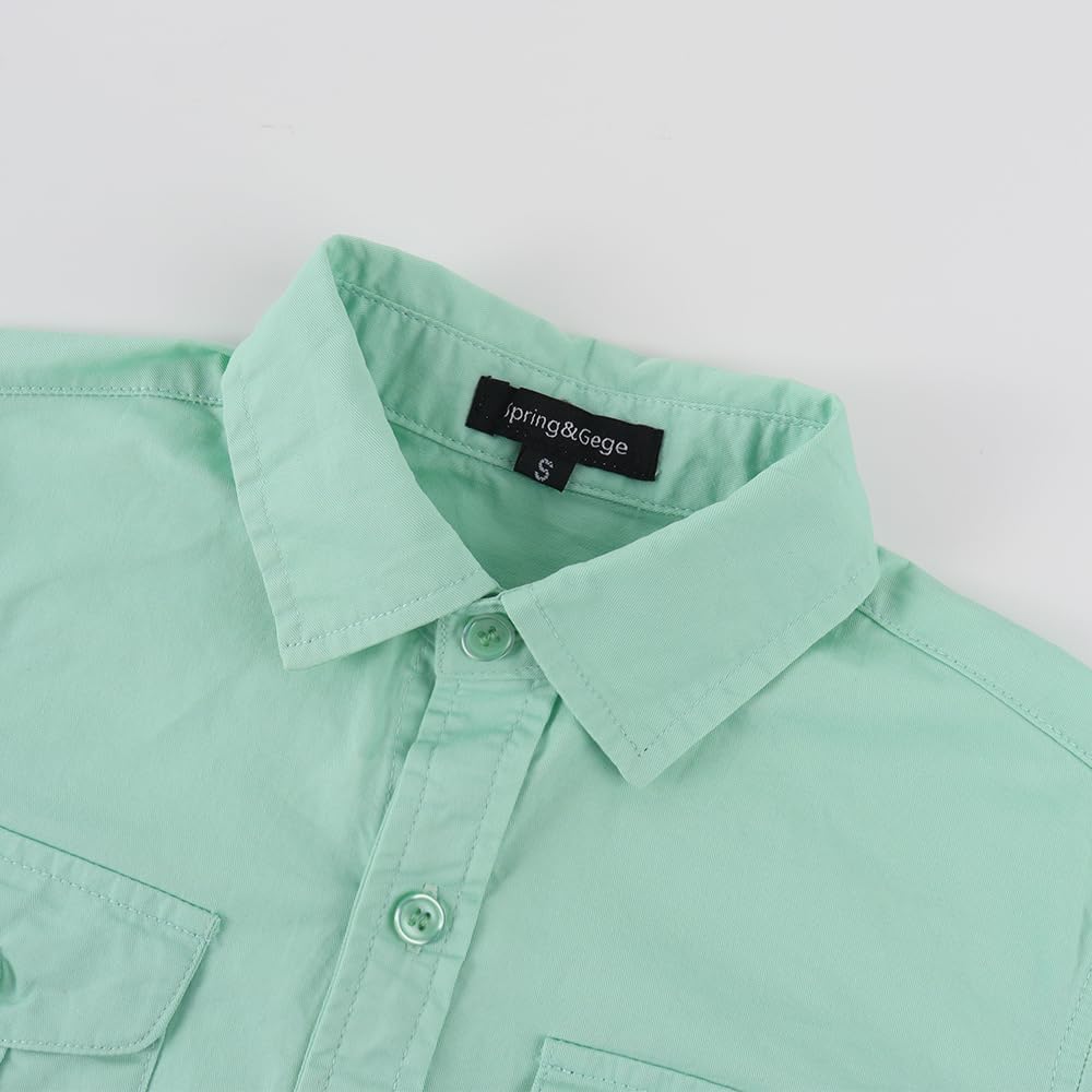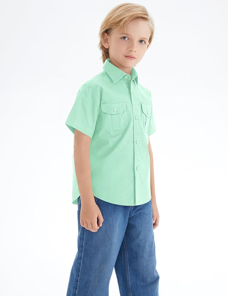 Spring&Gege Boys Western Short Sleeve Button Down Shirt Soft Cotton with Two Chest Pockets Solid (5-14 Years)