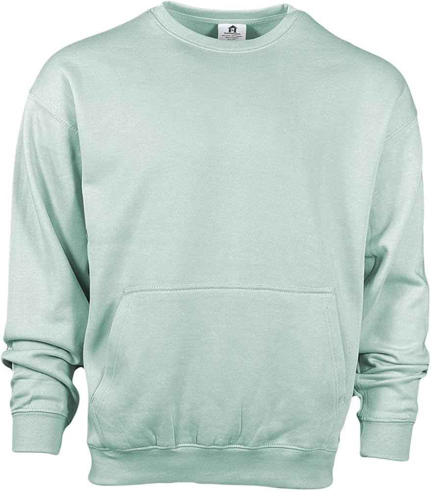 Ultra Soft 3-End Ringspun Unisex Pouch Pocket Crewneck Sweatshirt: This unique fabrication uses 3 threads, instead of the more common 2, to knit a thicker, loftier feeling fleece that's breathable and maintains a comfortable lighter weight. 3-End ringspun fleece is the product of choice for screenprinting and decorating because the third yarn creates a barrier between the face and back yarns.