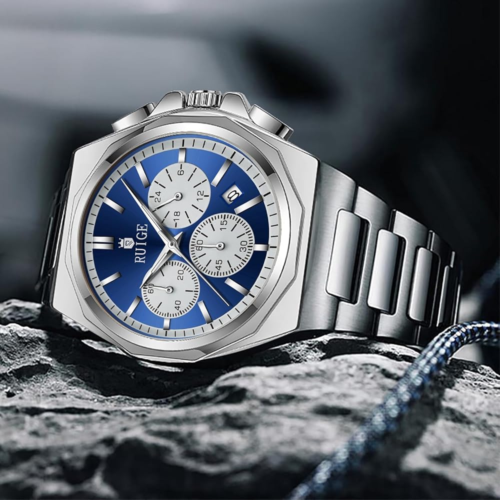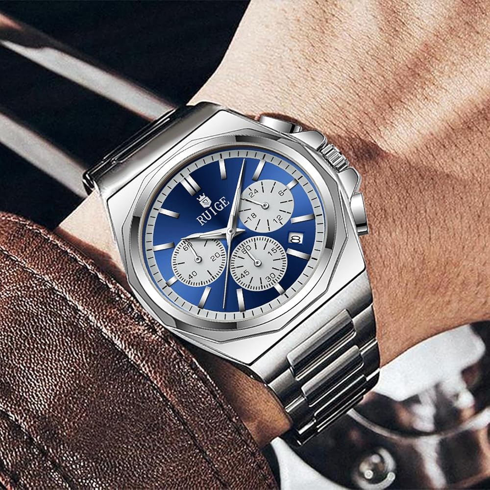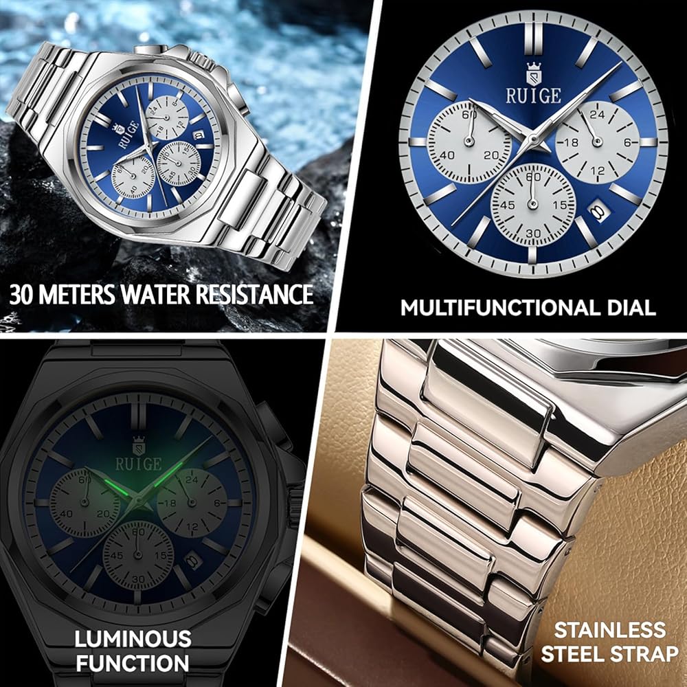 - RUIGE New Multi functional Men's Quartz Watch with Three Eyes and Six Needles, Fashionable Men's Night Light Waterproof Trendy Watch N19