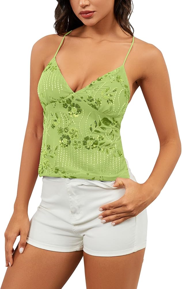 Material: Deep V neck sparkly camisole for women, made of polyester, lightweight, breathable and soft, comfy and sexy summer going out tops for women