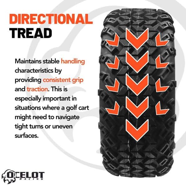 RELIABLE TRACTION, EVERY TIME: Trust in the superior grip of our all-terrain golf cart tires. Whether you're navigating sandy dunes, gravel paths, or wet grass, these tires will provide the traction you need for a safe and enjoyable ride.