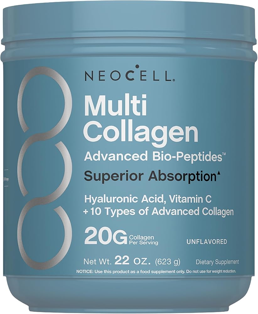 NeoCell Multi Collagen Bio-Peptides Powder | 22oz | Advanced with Hyaluronic Acid and Vitamin C | 10 Super Types of Collagen | Superior Absorption | Grassfed Protein Supplement