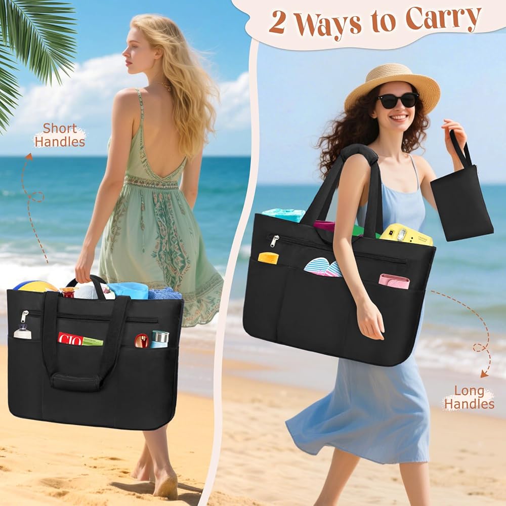 INDIVIDUAL WATERPROOF WET COMPARTMENT: This large tote bag with zipper is equipped with a separate waterproof wet compartment on the outside, you can put some wet items, wet bathing suits and towels in it to keep other items dry all day long. Perfect for the beach or swimming in the pool