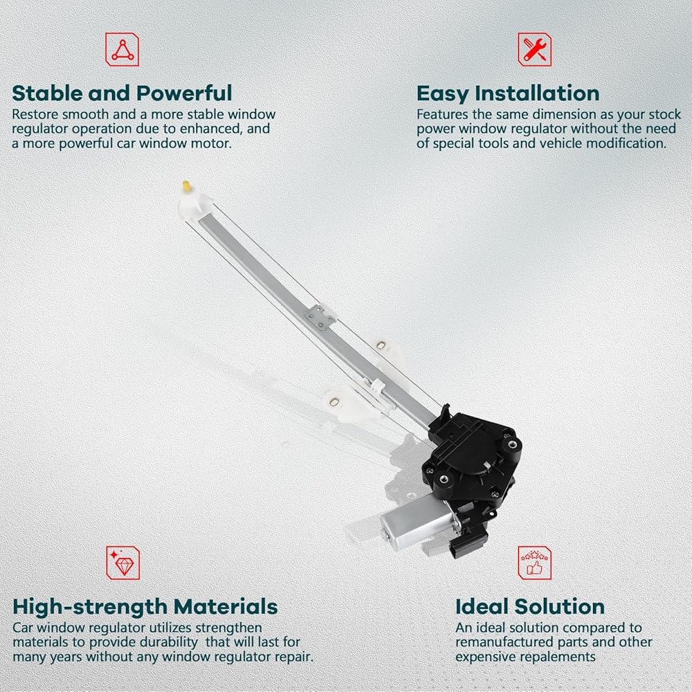 REINFORCED COMPONENTS: The window motor Front Left is made of thickened steel wire and steel plate, which has a stronger load-bearing capacity, is tough and firm and runs smoothly.