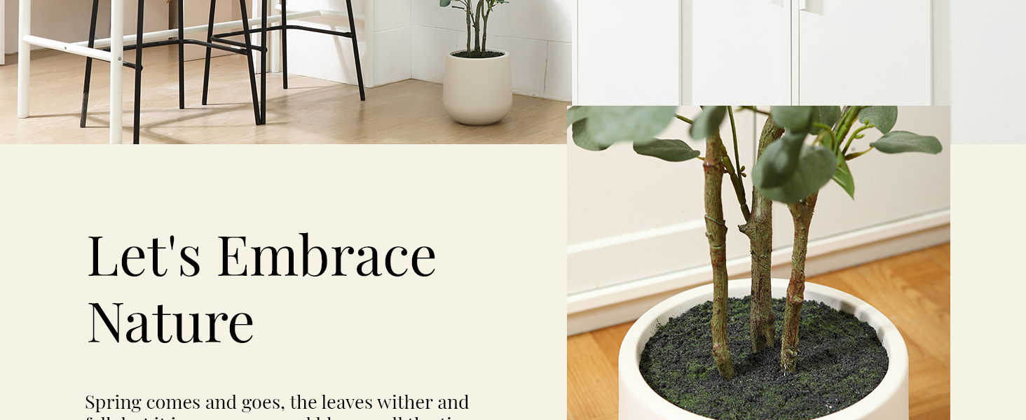 Add Natural Greenery: This faux eucalyptus tree is highly realistic in design and brings a touch of natural beauty to your home or office. The artificial Eucalyptus plant not only enriches the indoor view, but also adds a fresh and natural atmosphere.
