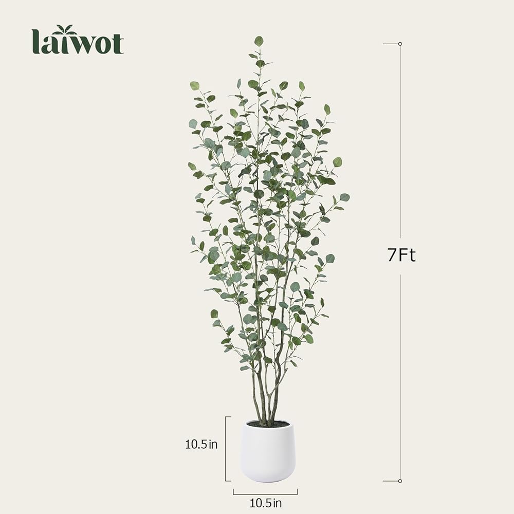 Artificial Eucalyptus Tree, 7ft Tall Fake Silk Plants for Indoor Home Decor, Large Faux Eucalyptus Tree with 10.5 in White Planter for Office Home Living Room Decor, 1 Pack