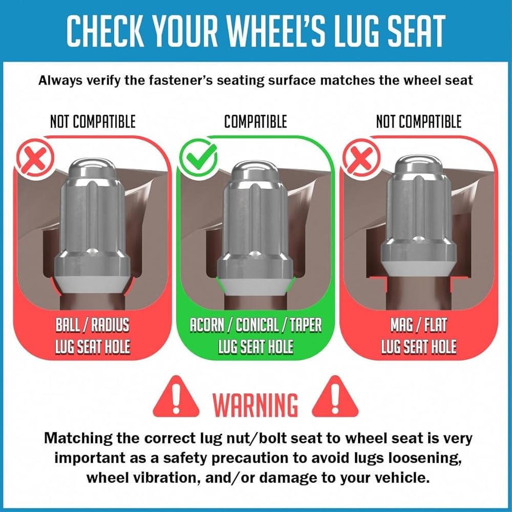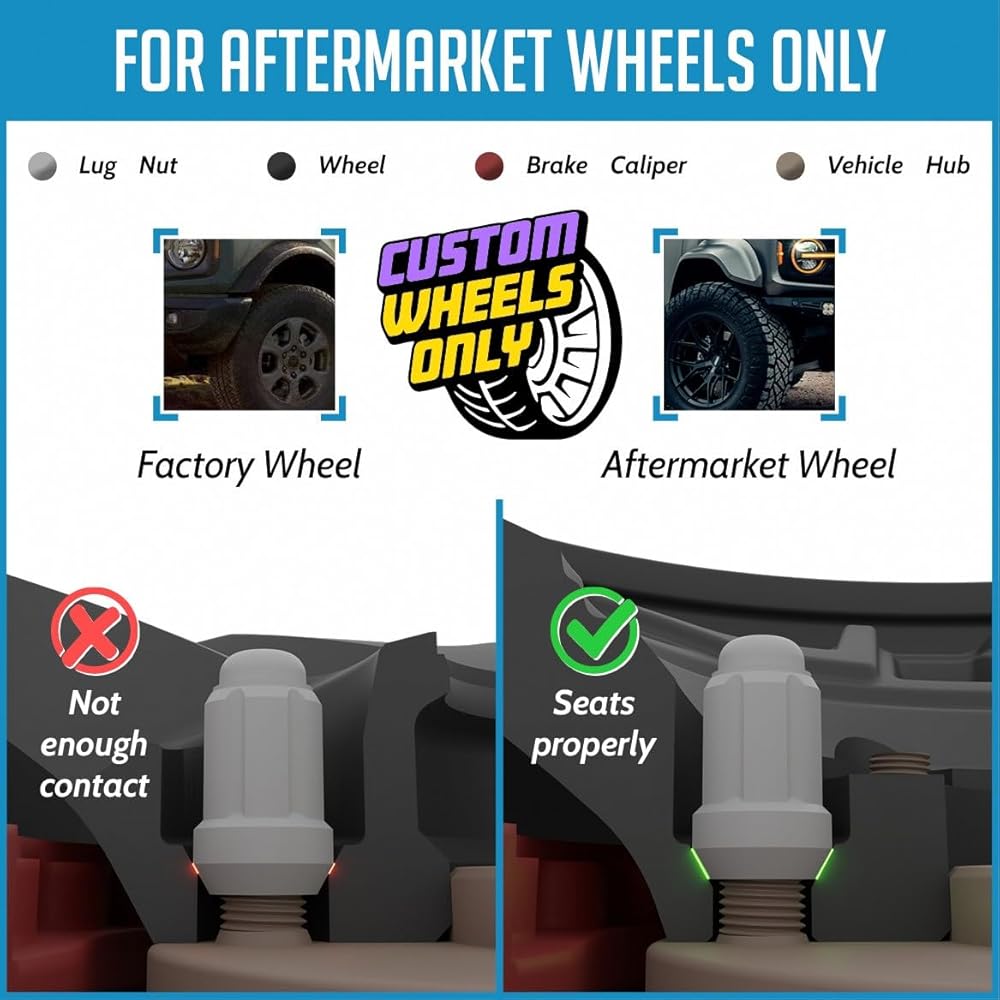 ❌ These Lug nuts are designed for AFTERMARKET wheels only. This lug may be the correct thread for your vehicle in many cases the lug seat is not large enough to create sufficient clamping force to safely install the OE wheel to your vehicle.