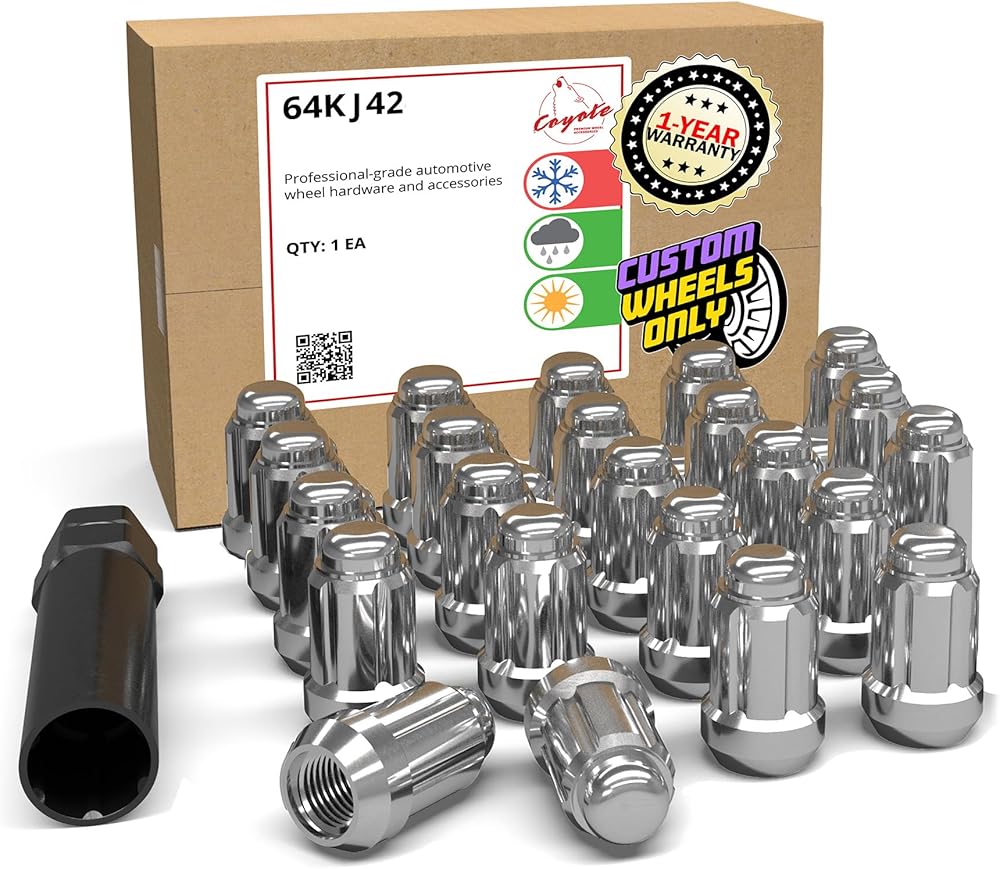Designed in the USA. Spike Lug nuts give your vehicle an edgy custom look. Our 4.40" Long Truck Spline Lug Nuts are typically used on pickup truck applications, where the OE studs are long and require a longer lug nut.