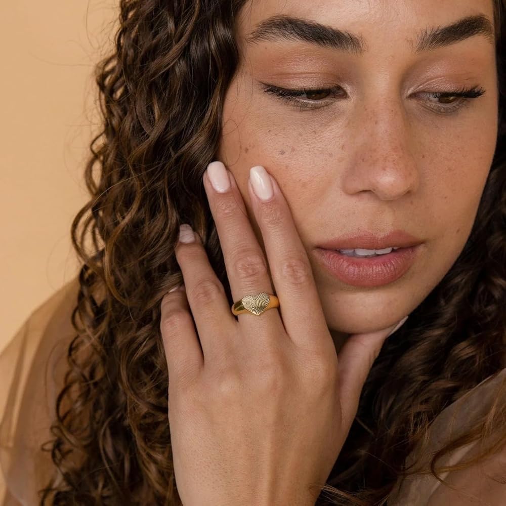 FINGERPRINT SIGNET RING ✧ Our Fingerprint Signet Ring Collection makes a touching, heartfelt gift to remember your loved ones. Available in thin, dainty rings or a thick, statement ring, wear the love inside your heart on the outside with style. More than just a jewelry piece, this ring will ensure your loved ones are always with you no matter where you go.