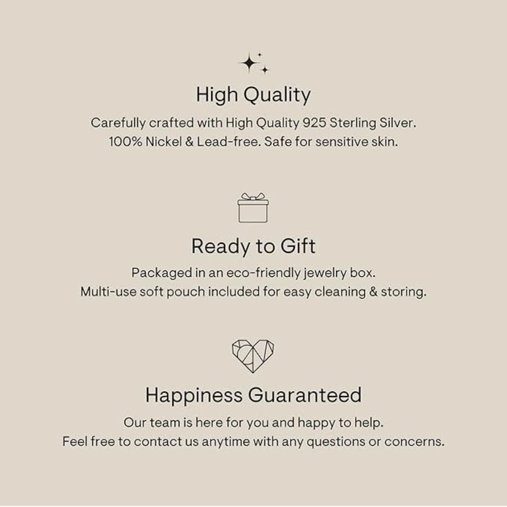 MATERIALS ✧ High Quality Solid 925 Sterling Silver. Available in 18k Gold, Sterling Silver and Rose Gold finish. Lead-free and Nickel-free. Safe for the most sensitive skin. Long lasting and perfect for you and your loved ones.