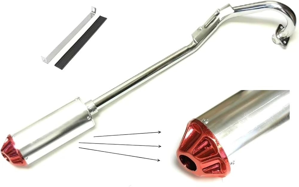 This is a complete one piece exhaust system from the head pipe to the tail section. This will make your bike breath with any engine modifications, and also sounds great with a stock bike.This PIPE makes your mini have that deep throaty sound like the big CRF's and gives your mini better throttle response and more power Fits Honda XR50, CRF50 or their copies, Chinese made pit bikes, 70cc, 110cc, and 125cc. Features Big bore Aluminum alloy RED TIP muffler Removable pipe guard 28mm head, 45mm eye to eye