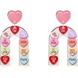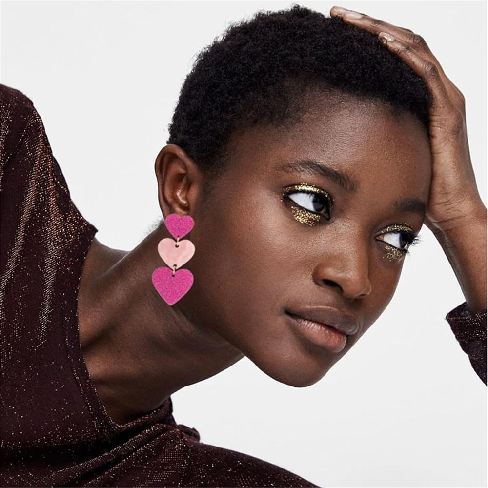 Design Style : This is pink acrylic love heart dangle earrings, the design of love makes you look very loved.