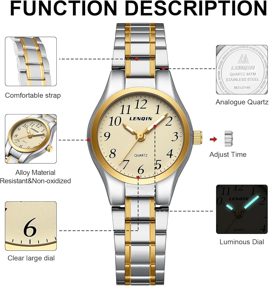 ⌚ 3 ATM Waterproof Women's Watches: Handwash, sweat-proof, rain-proof, no problem! But NOT suitable for bathing, swimming, diving. NOTE: Please DO NOT press any buttons in the water, or touching hot water.
