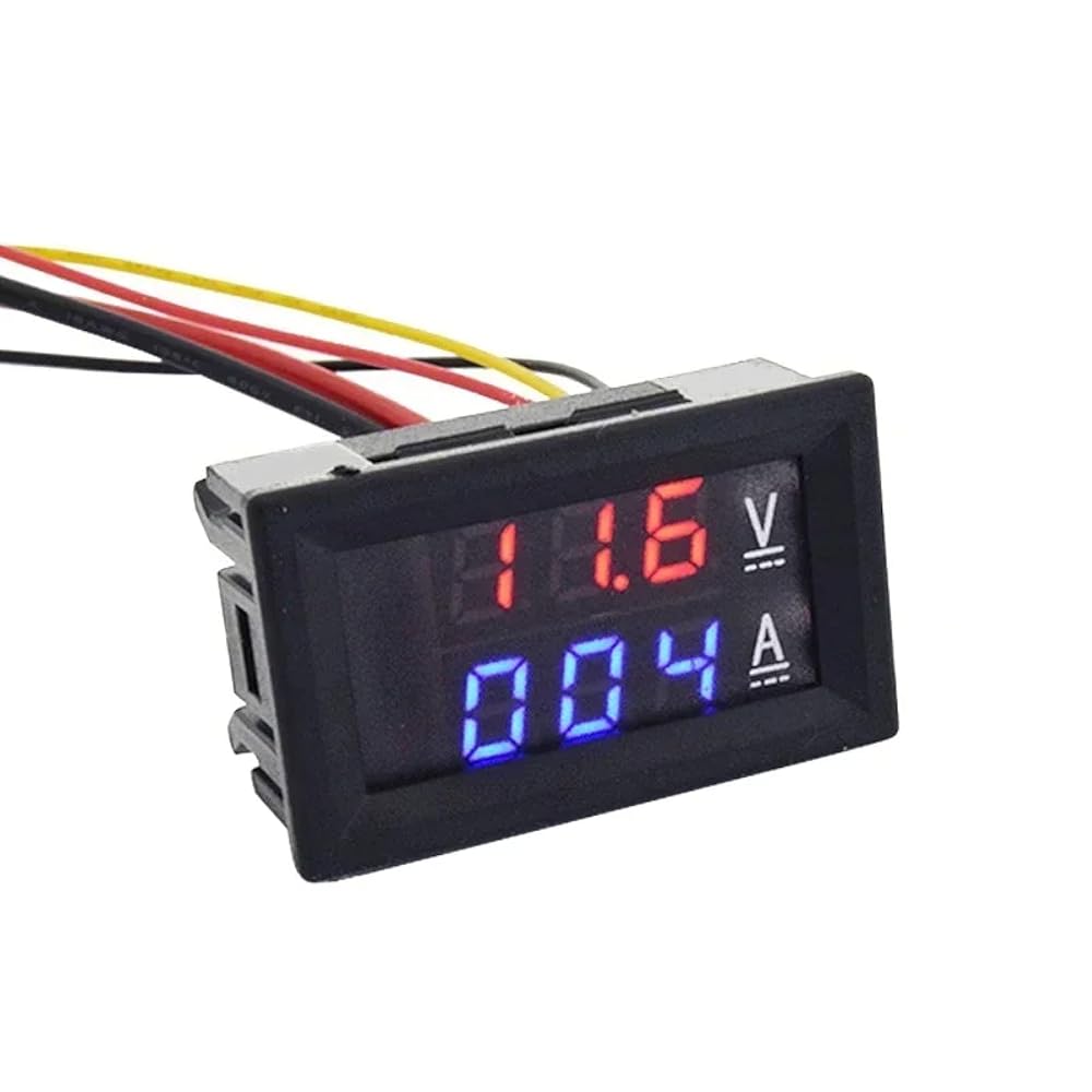 Versatile and precise 0.56" Digital Voltmeter Ammeter, designed to meet a wide range of electrical measurement needs with ease and accuracy. This compact device is perfect for both DC and AC applications, offering a detection range of 0-100V for DC and 60-500V for AC, ensuring compatibility with various power systems. The voltmeter ammeter features a dual-color LED display with red and blue illumination, providing clear and easy-to-read voltage and current measurements. With a detection current range that spans from 1A up to 100A, this device is suitable for a variety of applications, from small electronic projects to larger industrial setups. For DC measurements, the device supports current ranges of 0-999mA, 0-10A, and with the addition of an external shunt (not included), it can measure up to 100A. For AC measurements, it accommodates current ranges of 0-10A and 0-50A, with the option to extend to 100A using an external Current Transformer (CT, not included). The device boasts an accuracy class of ±1%, ensuring reliable and consistent readings. Its refresh rate of 350mS for DC and 500mS for AC guarantees real-time monitoring, allowing for quick response to any changes in voltage or current. The voltmeter ammeter has a mounting hole size of 46 x 27mm, making it easy to install in various settings. Its compact dimensions of 48 x 29 x 22mm ensure it won't take up much space, while the 15-20cm cable length provides ample reach for connections. Its robust construction and reliable performance make it suitable for use in a wide range of environments, from -10°C to 65°C.