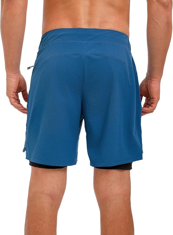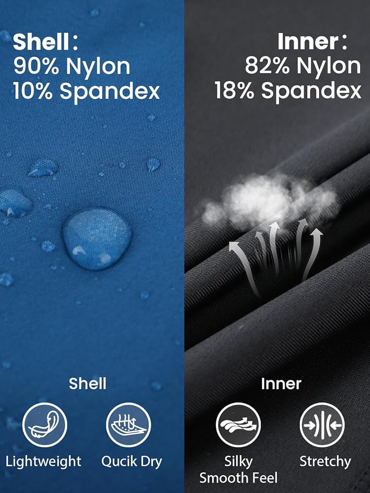 【2 in 1 Compression Lining】:Mens swim trunks with compression liner prevent chafing and reduce cling when wet. And these board shorts men's stretchy, breathable fabric keeps you dry and flexible during activities for maximum comfort