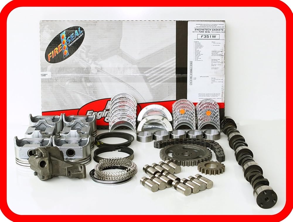 • This master rebuild kit will include: Full Gasket Set, Pistons, Piston Rings, Main/Rod/Cam Bearings, Timing Set, Oil Pump, Camshaft, Lifters, Freeze Plugs, Valve Stem Seals