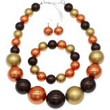 This is a very exquisite and comprehensive jewelry set. The colors are beautiful and rich. The different pieces are well made and feel very solidly constructed. They have a quality look and feel about them. Guranteed to make you look stunning!