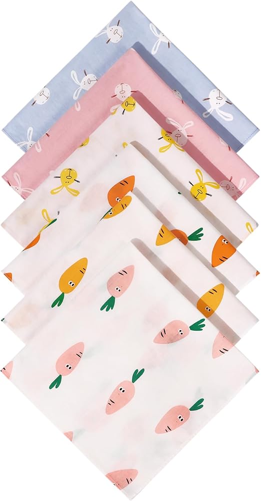 This valuable package includes a set of 6pcs soft cotton handkerchiefs, showcasing cartoon prints featuring a rich array of vibrant colors. Crafted from premium 100% 40S cotton, these lovely handkerchiefs are meticulously designed to be lightweight, naturally soft, absorbent, and long-lasting.