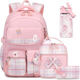 【4-in-1 Backpack Set】Buy this backpack for girls, you will get a stylish Bow Tie Plaid girls backpack with matching insulated lunch bag, pencil case and insulated water bottle. Your young scholar will be impeccably prepared for both class and the cafeteria, courtesy of this ideal 4-in-1 school backpack set. Elevate your child's school style with this must-have accessory – because they deserve the best!