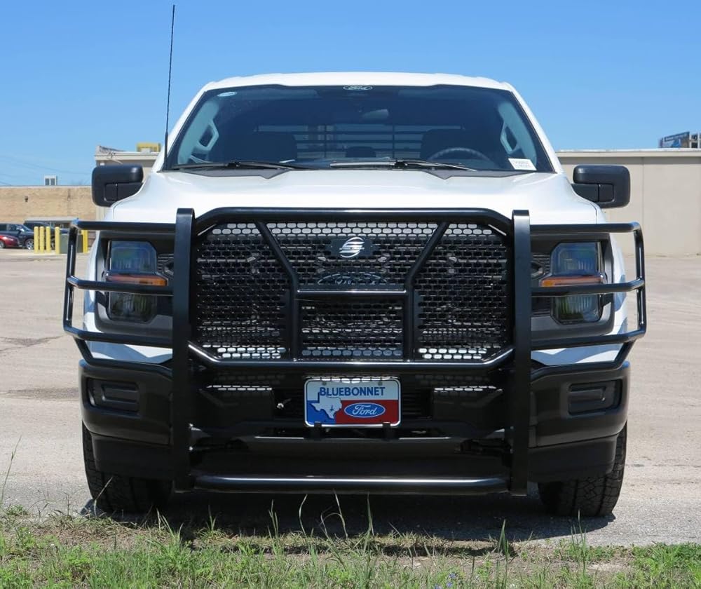 Defend your front end with Steelcraft's Heavy Duty Grille Guard. It's wrap around design will keep your entire front end and headlights protected, all while giving your vehicle an intimidating transformation. Product Highlights: One-piece fully welded design Punch plate grille Removable grille panel for emblem parking camera Keep your OE tow hooks E-coated and Powder Coated to ensure quality performance Note: Parking sensors will detect guard. Parking sensor relocation kit #10447SRP available for purchase. Warranty: Limited Lifetime Warranty
