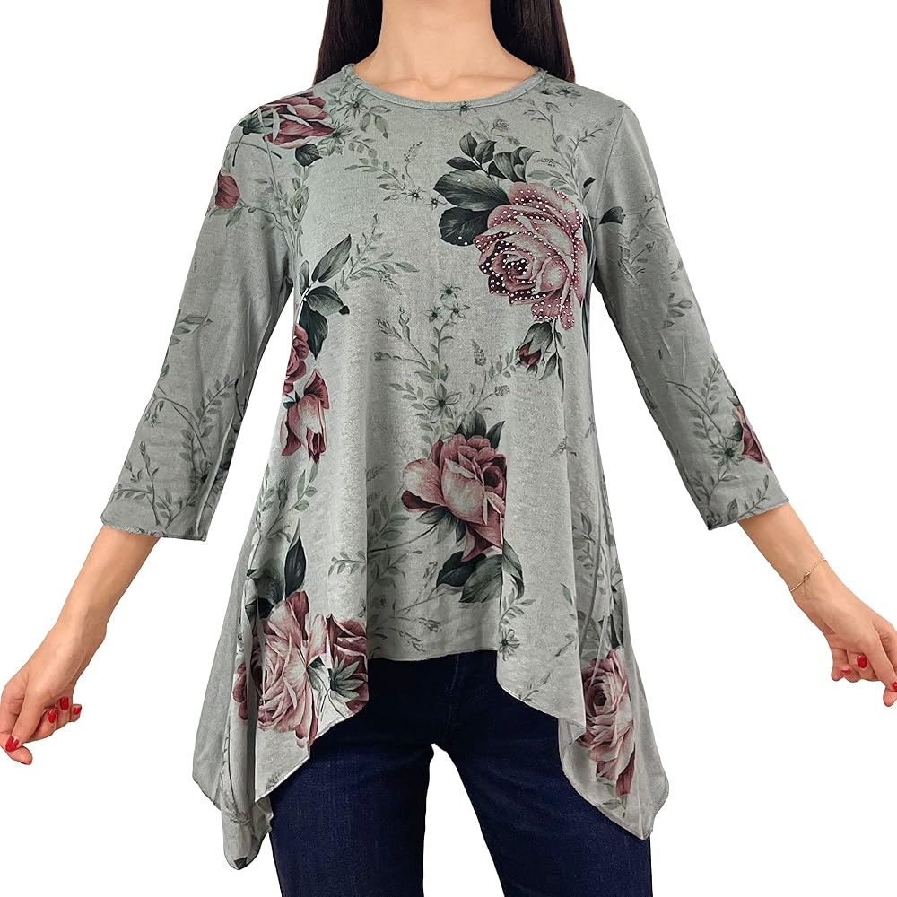 Color3/4 Sleeve - Light Grey W. Sparkly Rhinestone