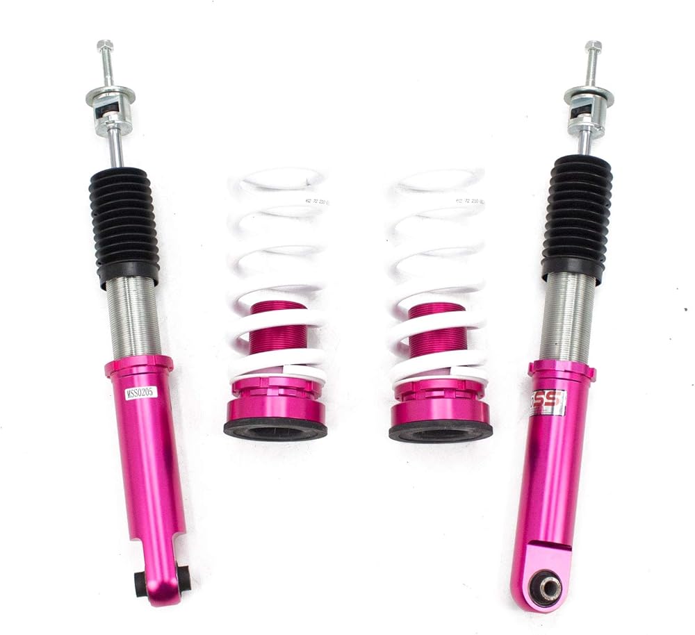 Godspeed Project's MonoSS is our one entity in our family of single-adjustable coilover suspension kits. These coilovers are designed to be a streetable race built coilover at an affordable price. It features a monotube damper that is made out of a carbon seamless steel 52mm tube with a performance internal piston providing maximum damper response. The cold-bent springs are made from high strength SAE9252 steel to optimize the balance between performance and comfort. Using race quality shock oil, Godspeed Project can guarantee exceptional damper performance at any temperature on and off the track. The top of the shock is attached to the car using a high quality top hat that features a high performance Japanese KOYO 6204Z bearing pillow ball mount (when applicable). The bottom shock brackets are made out of a T7075 forged aluminum or carbon steel brackets for lighter weight without sacrificing durability which also includes brake line brackets (when applicable). The MonoSS offers 16 level of damper adjust ability which can be set to your preference.
