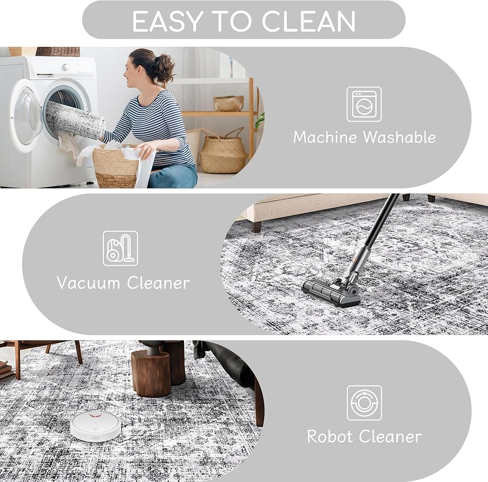 【Convenience Meets Comfort】This washable are rug is designed with a low-pile surface that makes it easy to care for while still providing a soft and comfortable feel underfoot. The low-profile fibers prevent dirt and debris from getting trapped, making regular cleaning quick and effortless.