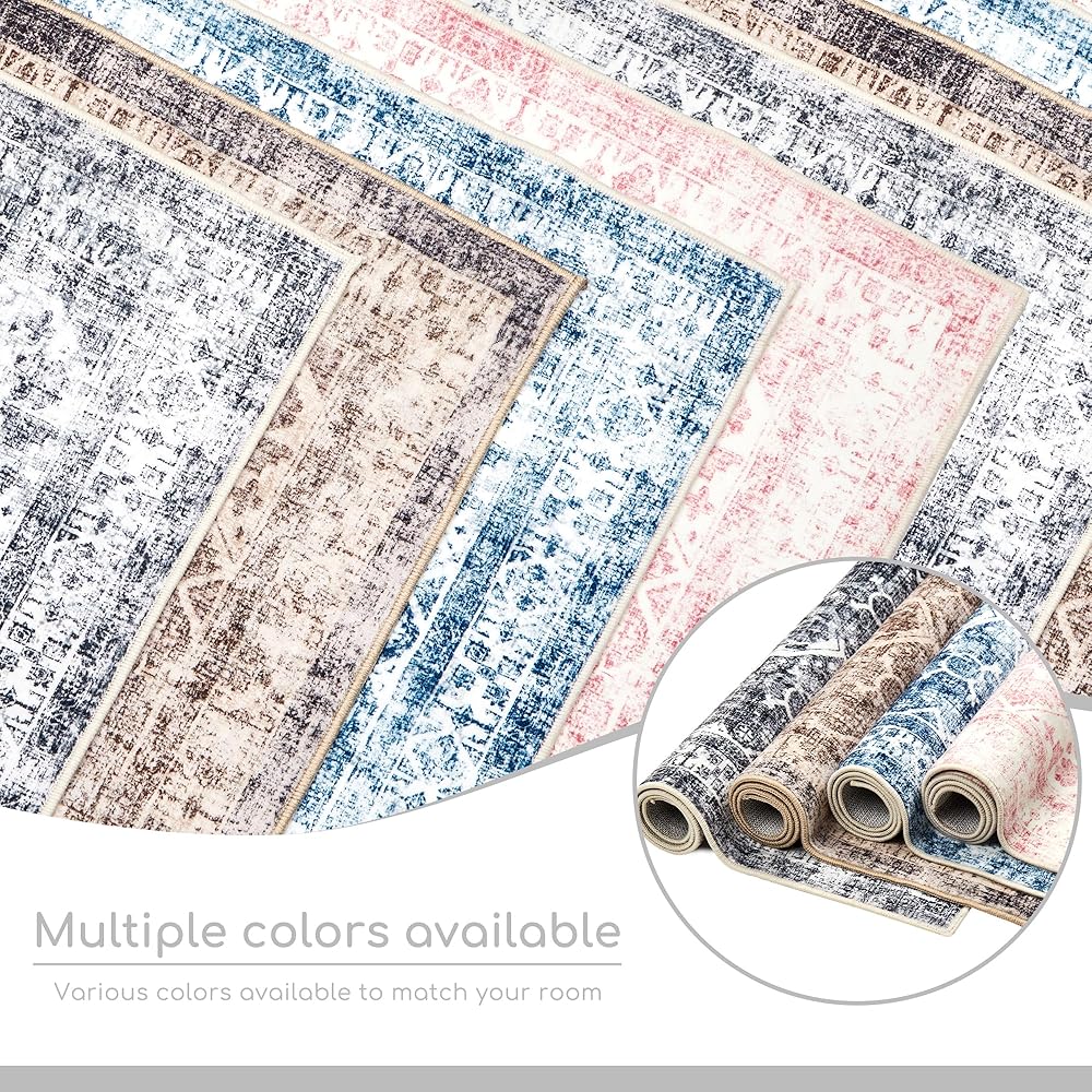 2x3 Washable Area Rug, Upgraded Denser Surface Vintage Rugs, Honeycomb Non-Slip Backing Living Room Rug, Easy Care Foldable Rugs for Living Room Bedroom Kitchen Dinning Room Home Office
