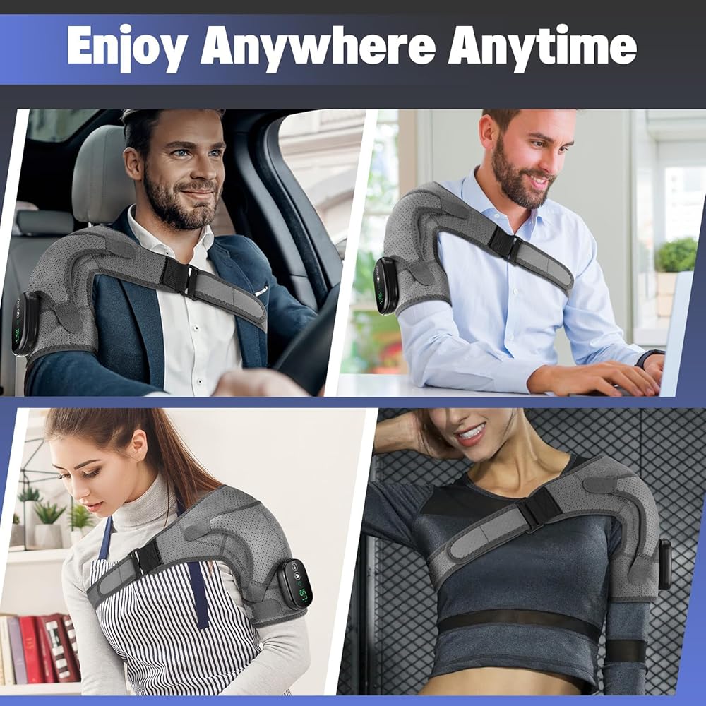 Shoulder Massager with Heat and Vibration: Our shoulder massager has 3 vibration and heating setting: low, medium, and high, which allows you to customize the heat intensity or vibration to suit your needs. 3 vibration modes provide great relax and comfort for your shoulder. You can anjoy the heating and vibration functions at the same time or individually