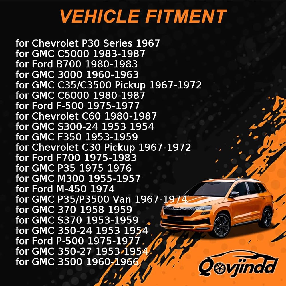 Vehicle Fit: Drum Brake Wheel Cylinder Kit for GMC F350 1953-1959 for GMC F350-24 1953-1954 for GMC F350-27 1953-1954 for GMC F370 1958-1959 for GMC FM340 1958-1959 for GMC FM350 1958-1959 for GMC M300 1955-1957 for GMC P35 1975-1976 for GMC P35/P3500 Van 1967-1974 for GMC P4500 1979-1987 for GMC S300 1955-1959 for GMC S300-24 1953-1954 for GMC S370 1953-1959 for International Cargostar 1980-1984