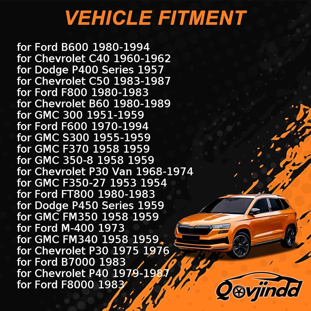Vehicle Fit: Drum Brake Wheel Cylinder Kit for Chevrolet B60 1980-1989 for Chevrolet C30 Pickup 1967-1972 for Chevrolet C40 1960-1962 for Chevrolet C50 1983-1987 for Chevrolet C60 1980-1987 for Chevrolet P30 1975-1976 for Chevrolet P30 Series 1967 for Chevrolet P30 Van 1968-1974 for Chevrolet P40 1979-1987 for Dodge P400 Series 1957 for Dodge P450 Series 1959 for Ford B600 1980-1994 for Ford B700 1980-1983 for Ford B7000 1983 for Ford F-500 1975-1977 for Ford F600 1970-1994