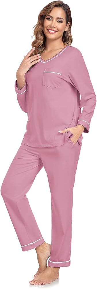 ALL SEASONS SLEEPING SET: Long sleeves and pants allow you to wear it in all seasons,wear it to prevent you from kicking the covers or catching a cold when the air conditioning is on in the summer,or to maintain normal body warmth in the spring, fall, and winter.