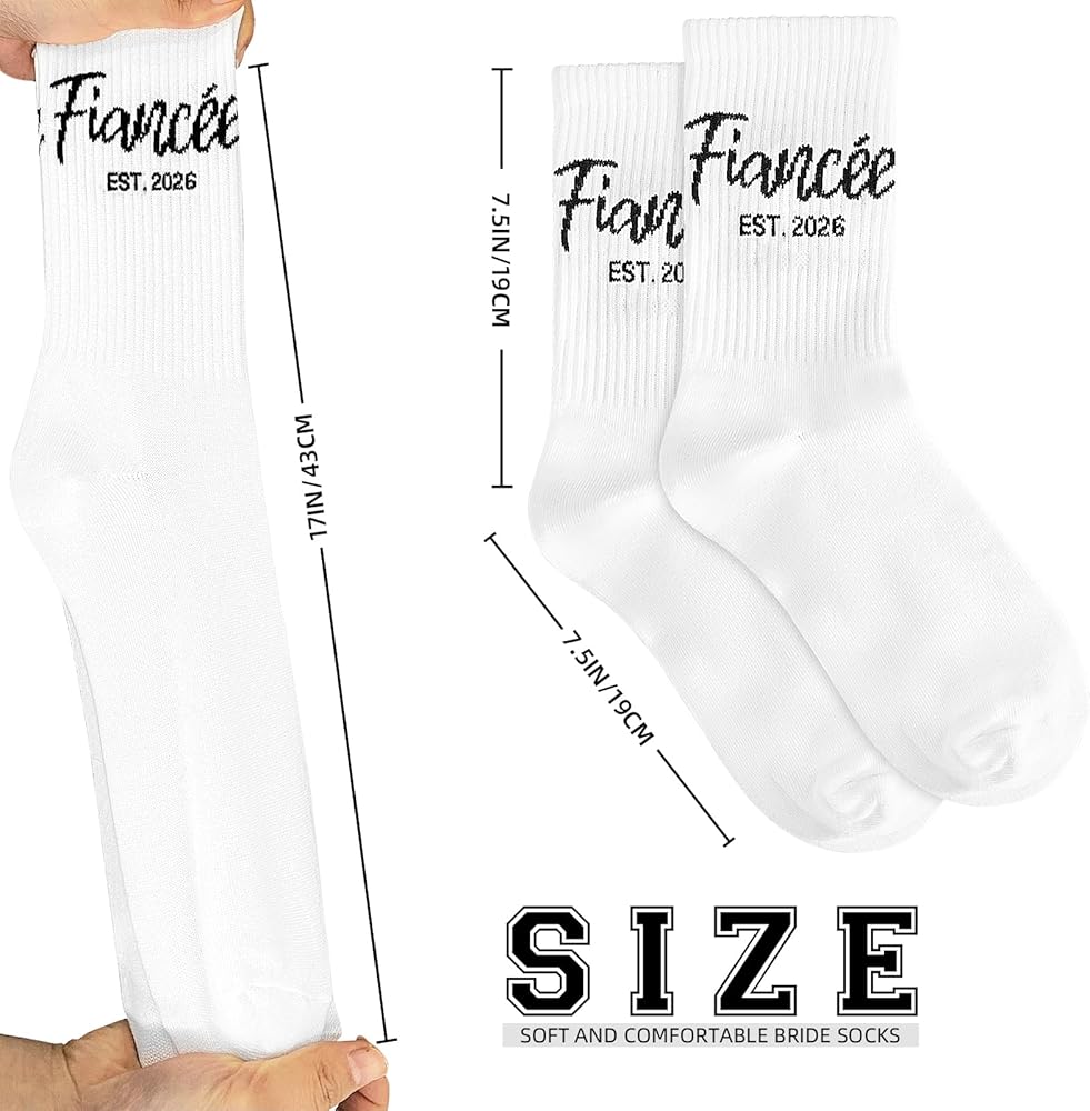 The white socks are embroidered with beautiful blue fonts "Mrs EST.2025". They can be given not only as wedding gifts for bride, but also as anniversary gifts, birthday gifts, christmas gifts or valentines day gifts for mrs, wife, and bride to be.