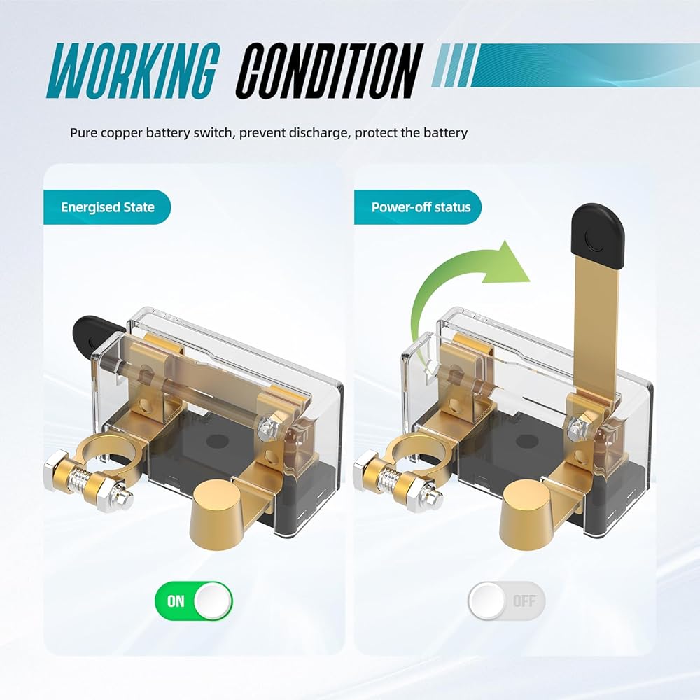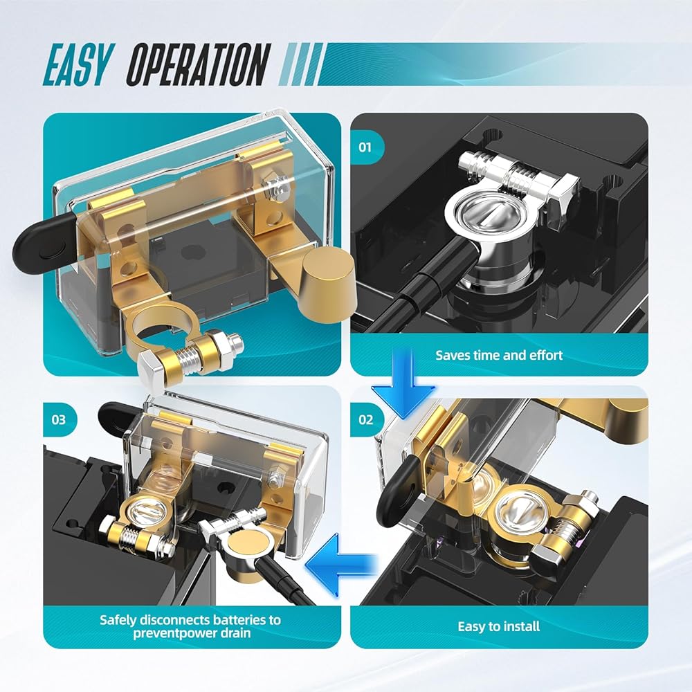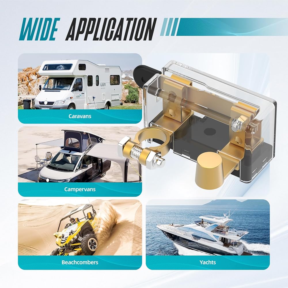 Universal Vehicle Compatibility: Perfectly suited for boats, RVs, trucks, cars, and other vehicles with 12V or 24V electrical systems, this versatile switch integrates seamlessly with standard battery terminals for straightforward installation