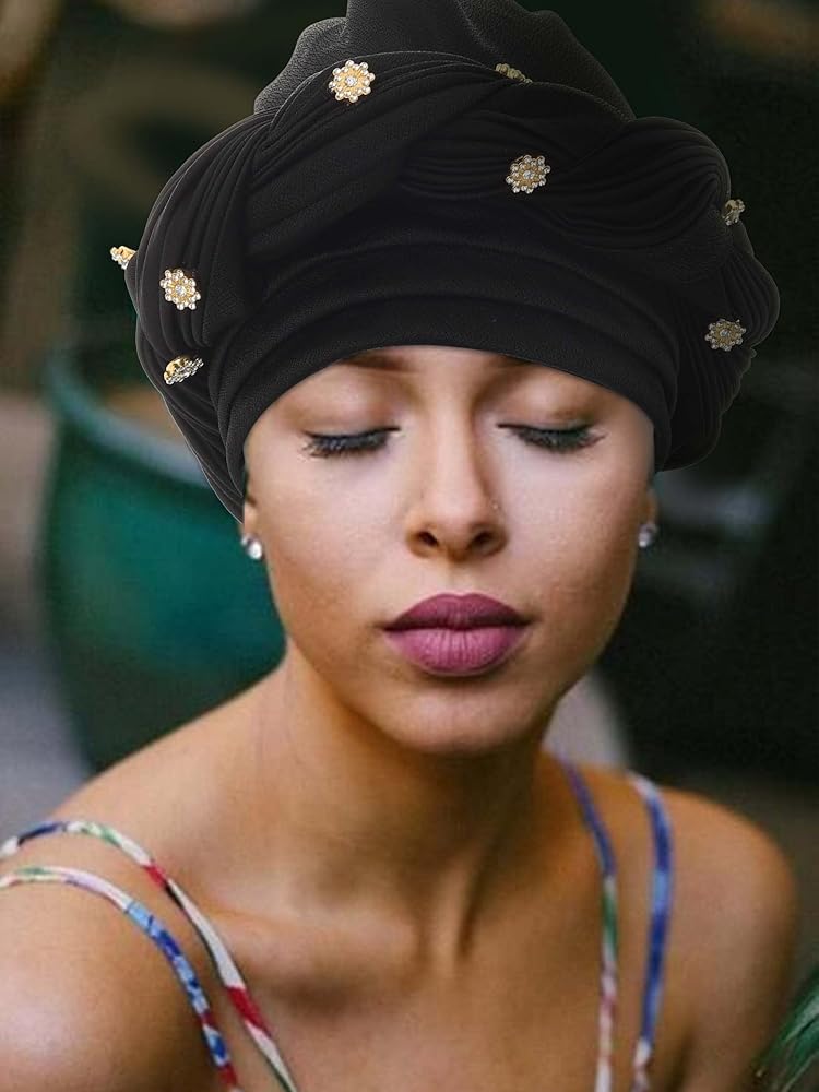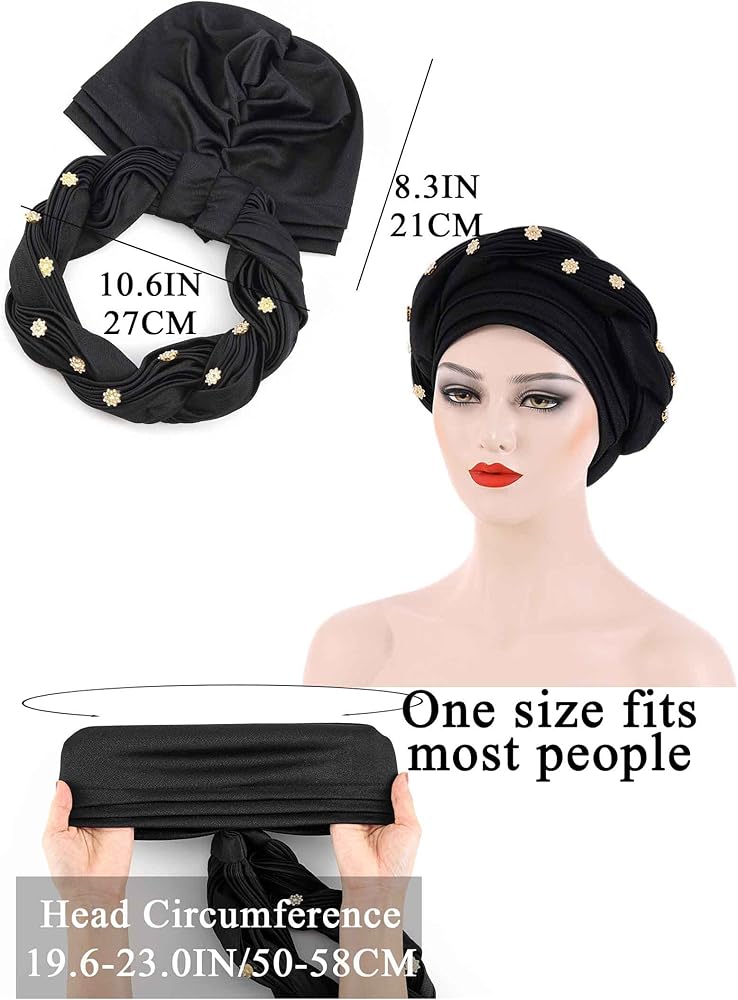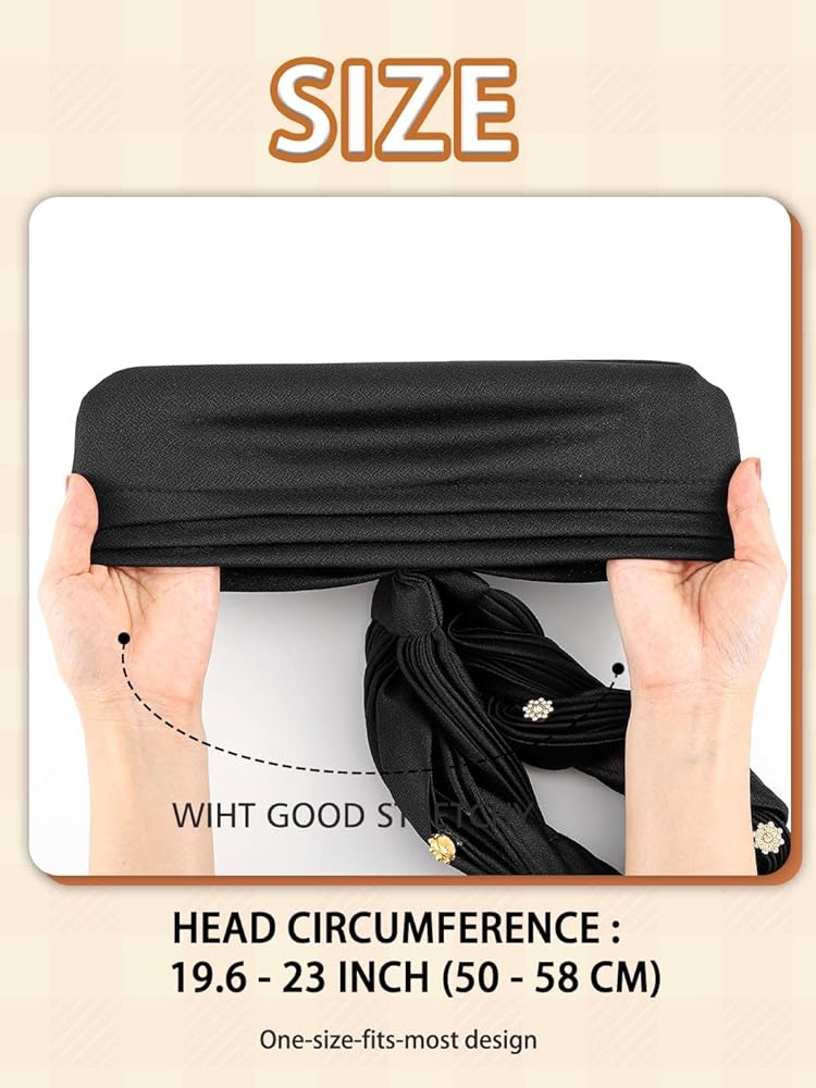 Pre-tied head turban head circumference is around 19.6 - 23 inch (50 - 58 cm); It is suitable for most women and girls. 1 piece.