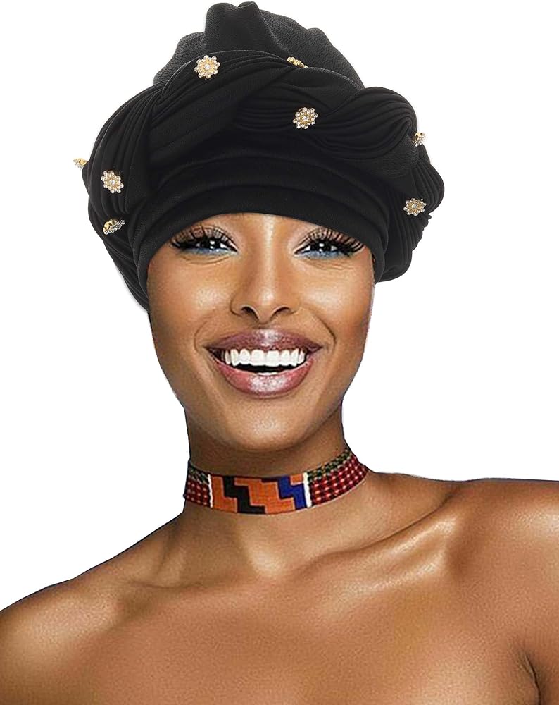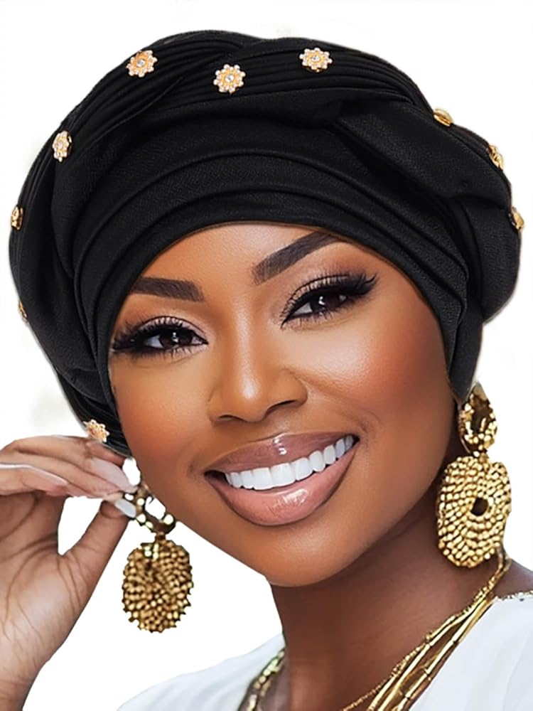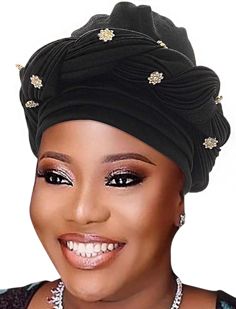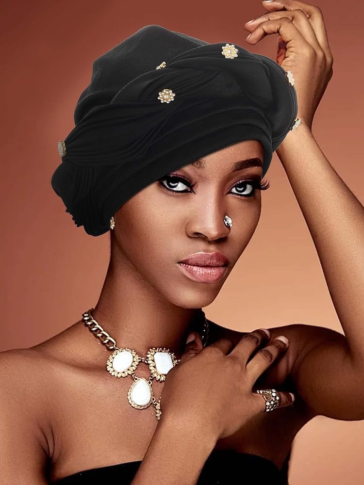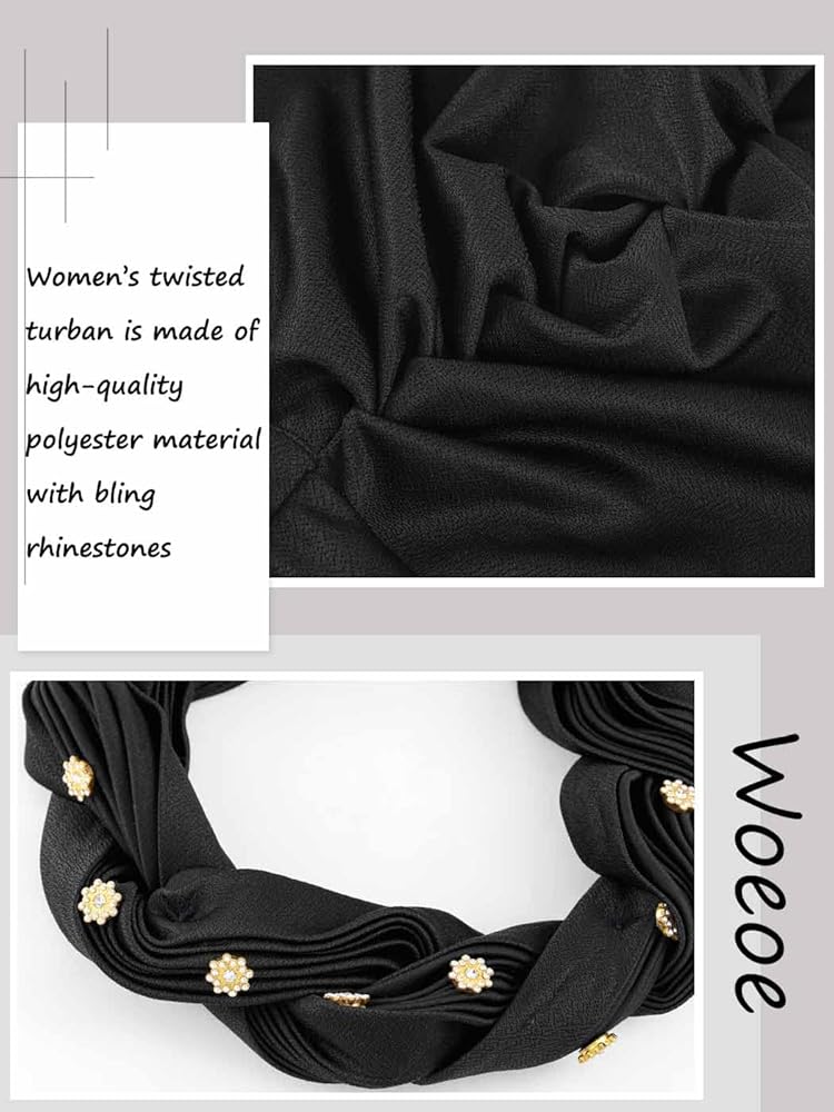 Twisted african turban is mainly made of high-quality polyester with rhinestones, soft and comfortable to wear.