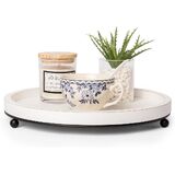【Exquisite Iron Bead Tray】: The round tray has a special distressed farmhouse finish and a stable iron bead design on the bottom. Use these items as coffee table tray decor or farmhouse kitchen decor. The decorative tray itself is certainly a highlight. Use it as a centerpiece on your kitchen serving tray, dining table, console table, and more!