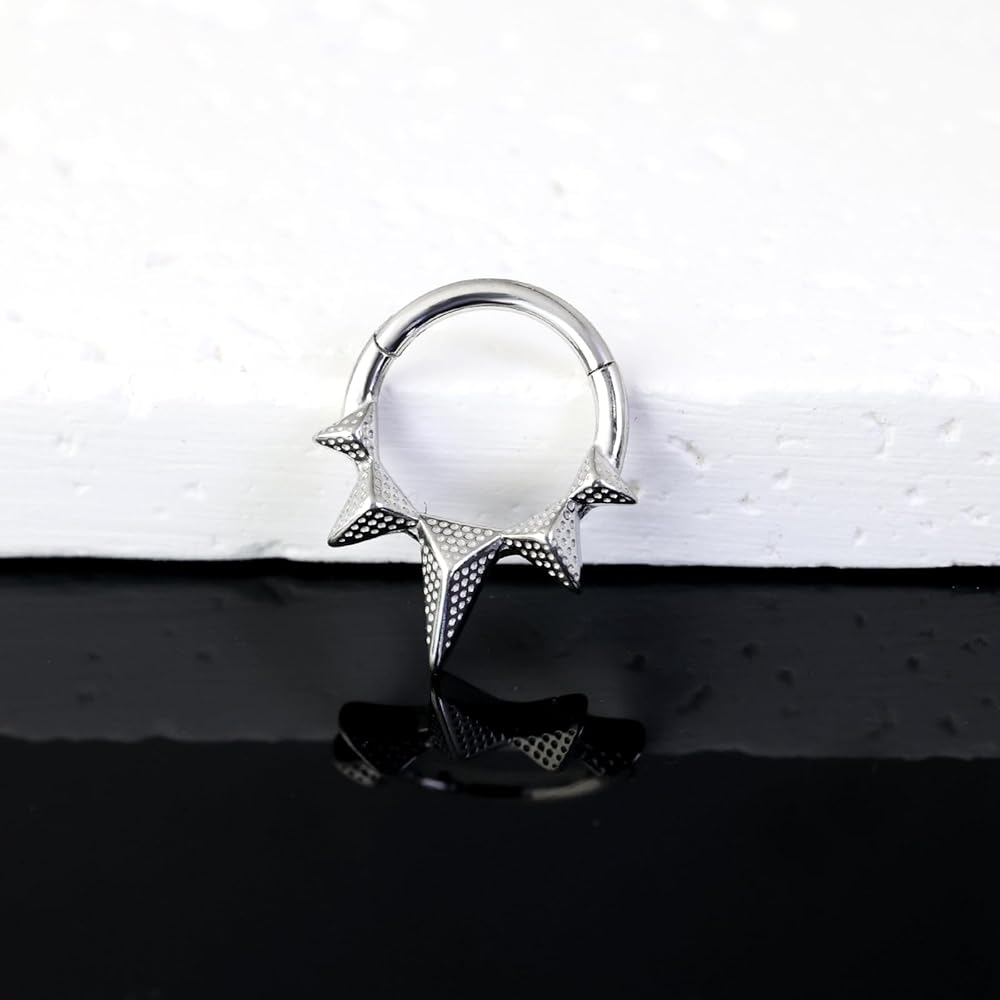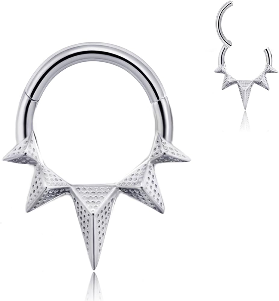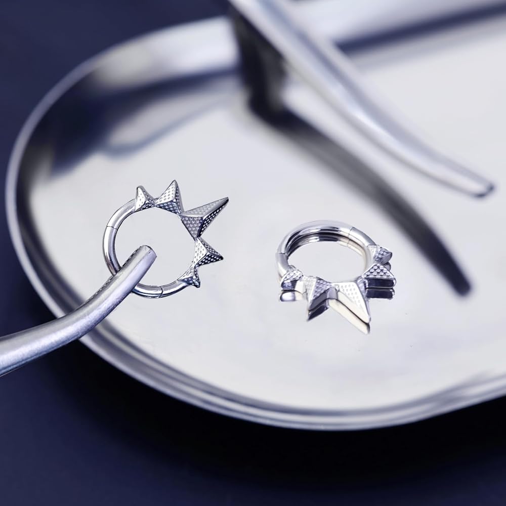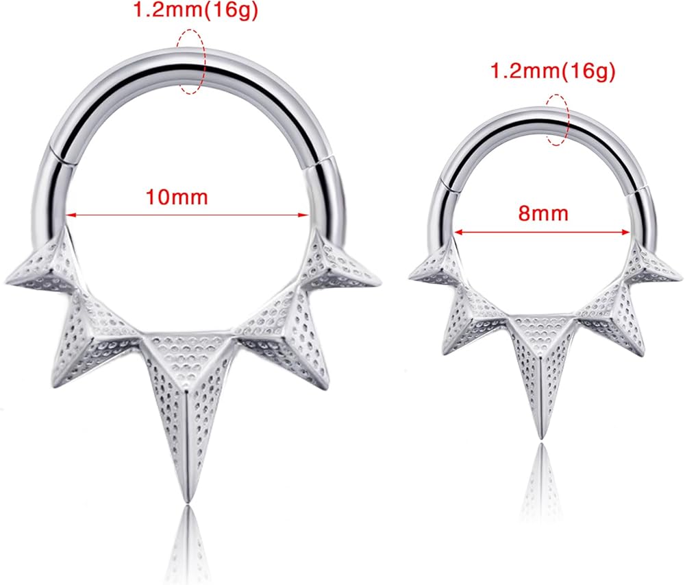 Nose Rings Hoops: Sun Rays design nose septum rings hoop comfy for daily wear. Rings size: 16G(1.2mm); Inner diameter: 8mm(0.31 inches) Silver Plated Color