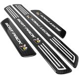 Crafted from real carbon fiber, these door sill protectors are designed to fit most cars, trucks, pickups, and SUVs. Each piece features a high quality, full color OEM-style car logo graphic printed with UV and scratch-resistant technology. It is built to last and look great. These protectors not only add a sleek, custom look but also help cover up existing scratches and protect your door sills from further wear, scuffs, and paint damage. Lightweight, flexible, waterproof, and easy to install using strong adhesive backing—no tools required. This is a 4-piece set: 2 large pieces (19" x 1.5") and 2 small pieces (10" x 1.5"). Please measure your vehicle's door sills before purchasing. This is an officially licensed product made by iPick Image. All rights reserved.